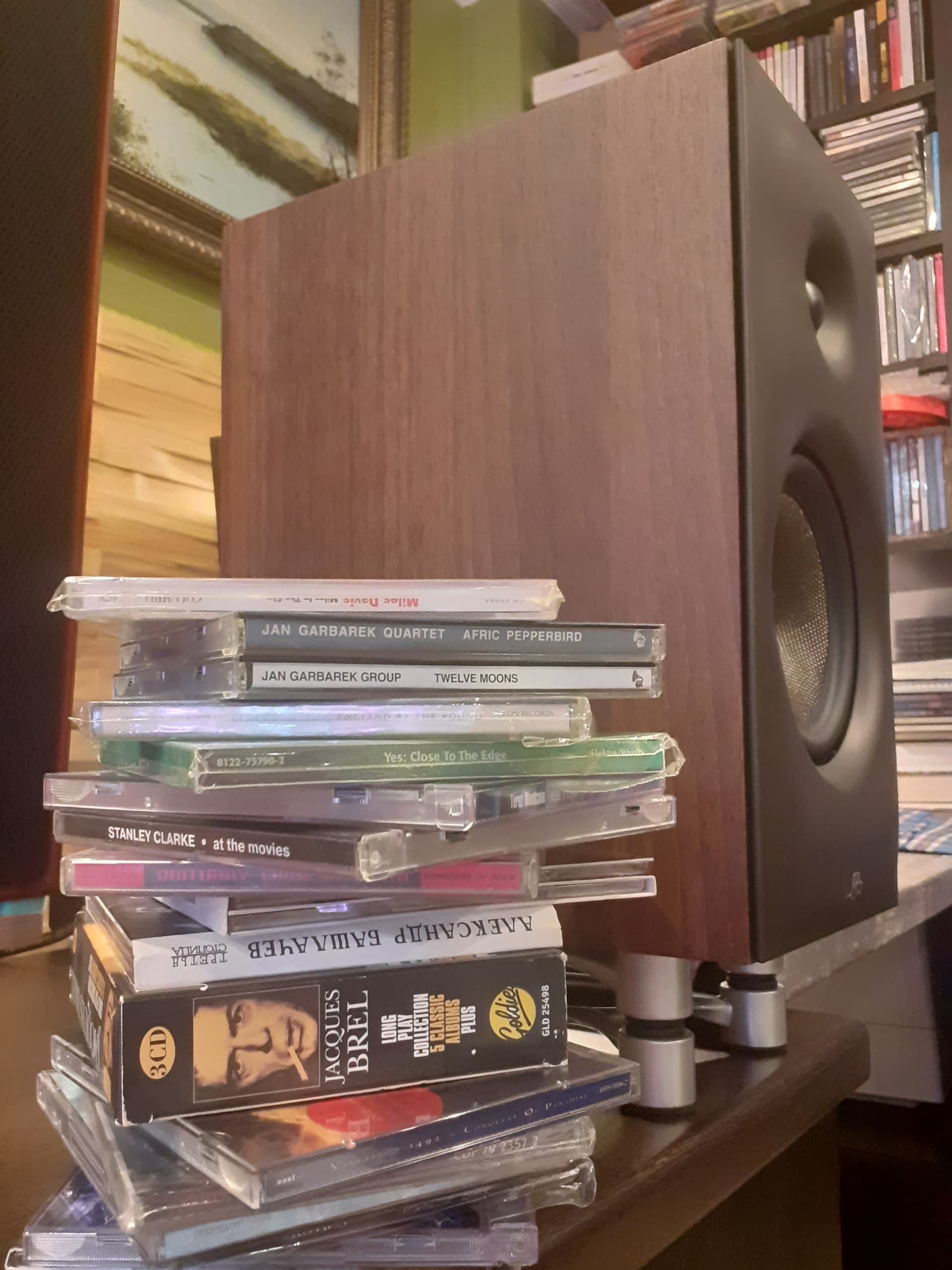 Стандартный прогрев я начал с Blue spec японского издания альбома «Head Hanters» Herbie Hancock – сцена между осей акустики, всё выше уровня пищалок и мало выходит за эти границы, на моей акустике в тандеме с супертвитером все сильно иначе – временами фантомы инструментов возникают слева и справа, заставляя поднимать голову на мнимый источник. В целом звучание джаза очень хорошее, это подтвердят и другие джазовые альбомы. Труба Майлза Дэвиса не резала слух. Саксофон Яна Гарбарека был певуч и не криклив.