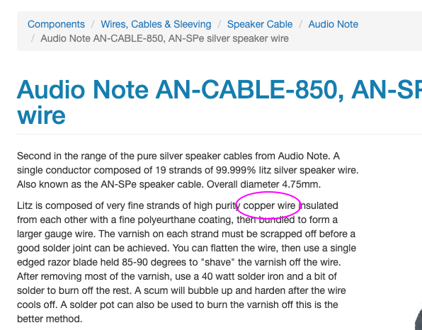 Audio Note AN-WIRE-150/155/170/185 - это не подделка - но к акустическому кабелю отношения не имеет