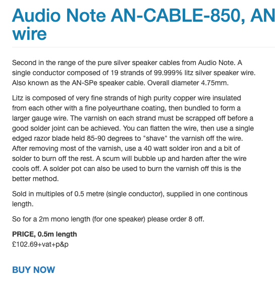 Audio Note UK модель кабеля AN-SPe 20 – никогда не выпускал (особенно в 1999 году)