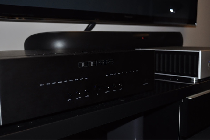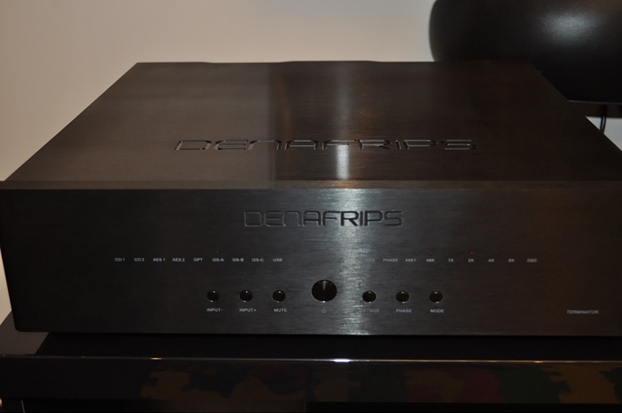 У конвертера почти все возможные цифровые входы, здесь Denafrips решили по максимуму укомплектовать старшую модель ЦАП, а именно: RCA, BNC, 2xAes/Ebu, Amanero USB, 2хTOSlink, 2хi2s RG45 и i2s HDMI (lvds по стандарту PS Audio). Два режима NOS/OS, на каждый режим сделаны по два фильтра. Инструкции детальной нет и что в режиме NOS можно менять фильтр я обнаружил только спустя две недели. Что именно в этом режиме служит фильтрацией мне неизвестно, но изменения звука вполне явные. В конвертере нет предусилителя, экрана, пульта, сетевого входа Renderer, AirPlay и не одного предохранителя. На мой вопрос Denafrips “почему?”, я получил вполне ожидаемый ответ, компания старалась свести к минимуму любое негативное влияние на звук. ЦАП приехал совершенно непрогретый и недели две прогревался с небольшими перерывами, звук “ломало” прилично. У моего источника имеются цифровые выходы Coax, Aes/Ebu, i2s HDMI. Наилучшим для меня оказался i2s, по сей день пользуюсь именно им. Хотя Aes/Ebu тоже очень прилично звучит, но через i2s всё же разрешение повыше. Вход USB я не прогревал и один раз проверил в гостевой системе, в качестве транспорта был Versus MP. USB реализован хорошо, ничем не уступает более дорогим и именитым ЦАП, но ожидаемо хуже i2s или Aes. За месяц прослушивания Terminator не обнаружил каких-либо сбоев со звуком, нестабильной работы или чего-то подобного. Хочу отдельно отметить достаточно стабильные приёмники цифрового сигнала, а также XLR выходы 4,6VRMS. Громкость звука через балансные выходы громче чем у других ЦАП побывавших у меня ранее.