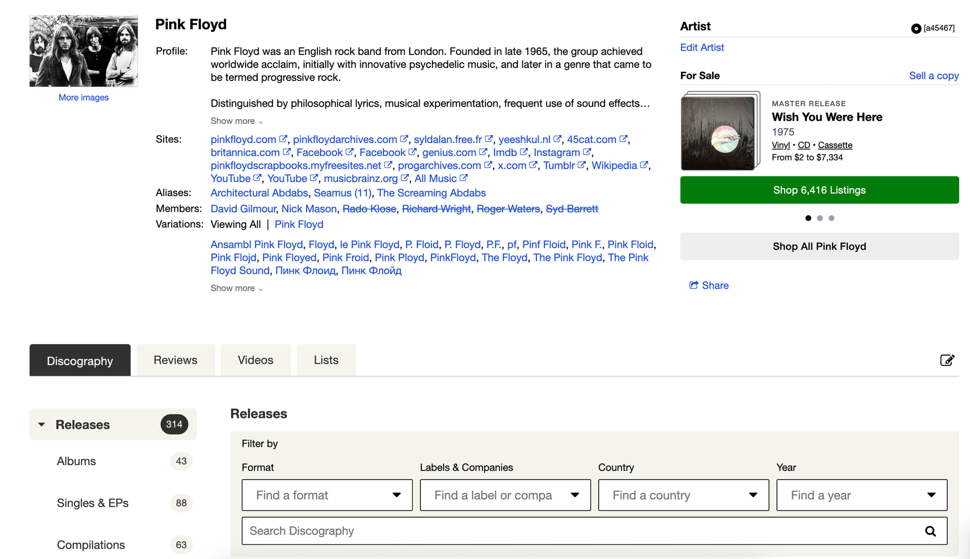 Согласно данным Discogs, средняя цена пластинки составляет 14,55$, компакт-диска 11,70$ и кассеты стоят (неожиданно) 12,18$. Пластинки, вполне ожидаемо, самый популярный формат на сайте, на них приходится 79% всех сделок на сайте. На CD приходится 18% и на кассеты — 1,4%.