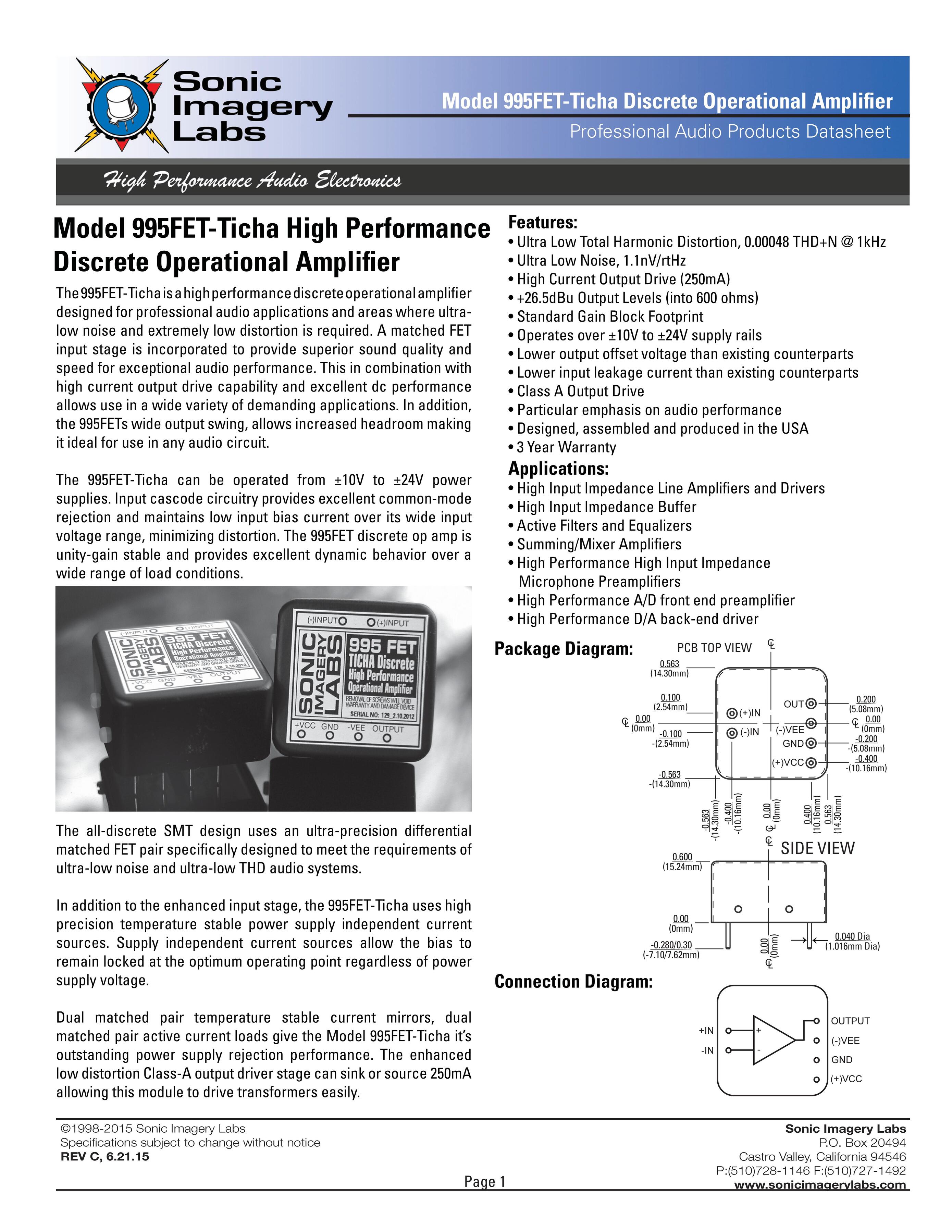 995 FET-Ticha - это высокопроизводительный дискретный операционный усилитель разработанный для профессиональных аудио приложений и областей, где требуется ультра-низкий шум , весьма низкое искажение и сильно линейная не окрашенная передача. Хорошо подобранная FET пара входного сигнала обеспечивает превосходное качество звука и скорость.
