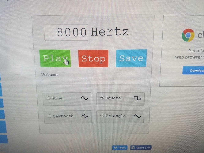Далее мы видим значительное ухудшение синусоиды, и уже на частотах после 6 кгц трудно разобрать что это на экране, 8 КГц узнать уже невозможно, а 20 000 является просто каким то однотактным всплеском.