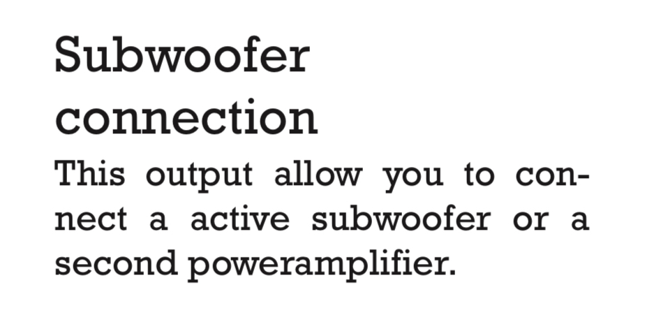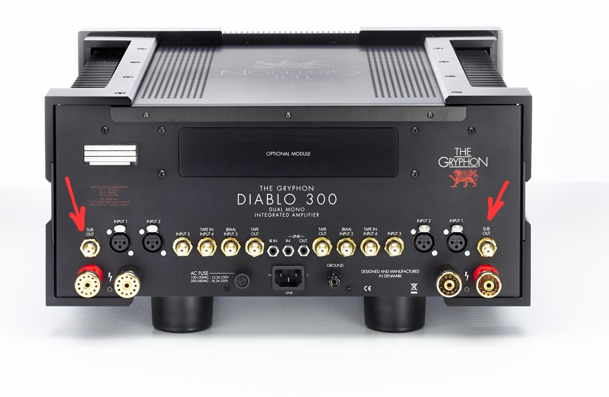 Если аппарат сделан по принципу двойного моно, то скорее всего там выход с каждого канала, без суммирования. На сабвуферах обычно есть два входа и они суммируют сами. Но лучше посмотреть в мануал, что там написано?