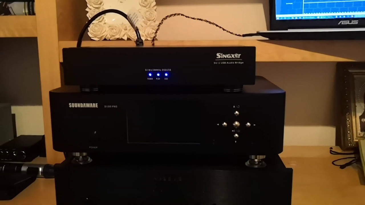 С компа (Win10 + Foobar2000 + Singxer Audio ASIO driver) по USB (-=SAMOPLЁT=-) в SU-1, далее по I2S (Audioquest Perl) в ЦАП Denafrips Pontus. Режим DSD native. Эзернет и сетевые - компьютерные.