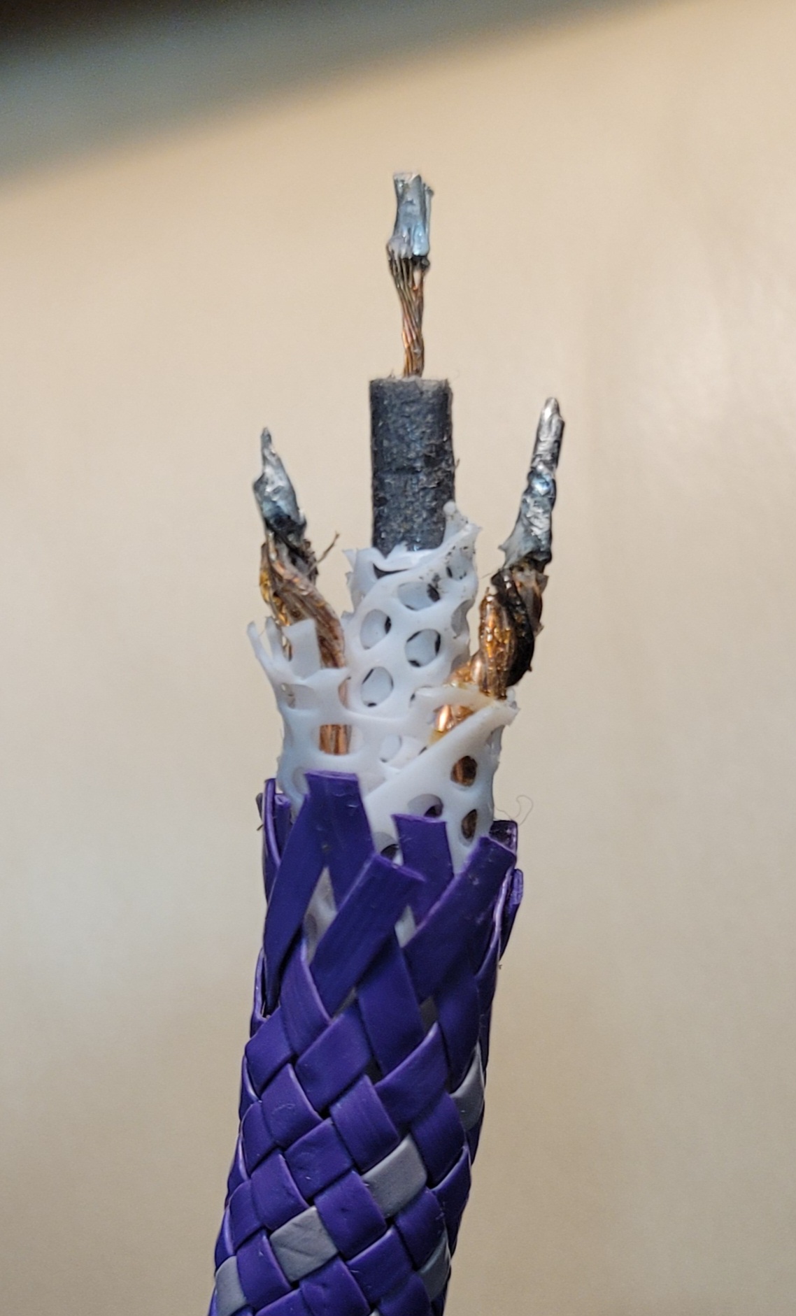 Кабель настоящий, а вот фиолетовый разъем XLR Male вызывает сомнения, мало того, что он отличается цветом внутренностей от серого, так еще на нем не видно маркировки пинов.
