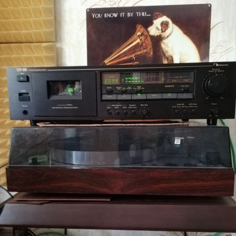 Не решался купить деку - крутые дорогие, некрутых - целое море. Так-то есть репортерский портатив (Sony D5), штук 30 записанных кассет. Недавно на авито недорого подвернулась начальная Nakamichi CR-2E (на фото - первая прослушка). Звучит неплохо, но большого мэджика нет. Коллега на работе отдал мне три десятка запакованных кассет basf ferro extra I, которые неизвестно зачем хранил. На авито есть объявление, что могут записать музыку со студийных лент 38/2 (с Отари) на кассеты (на Накамичи 1000xlz) по каталогам - кто нибудь для пробы заказывал такую запись? По идее качество должно быть очень хорошим.