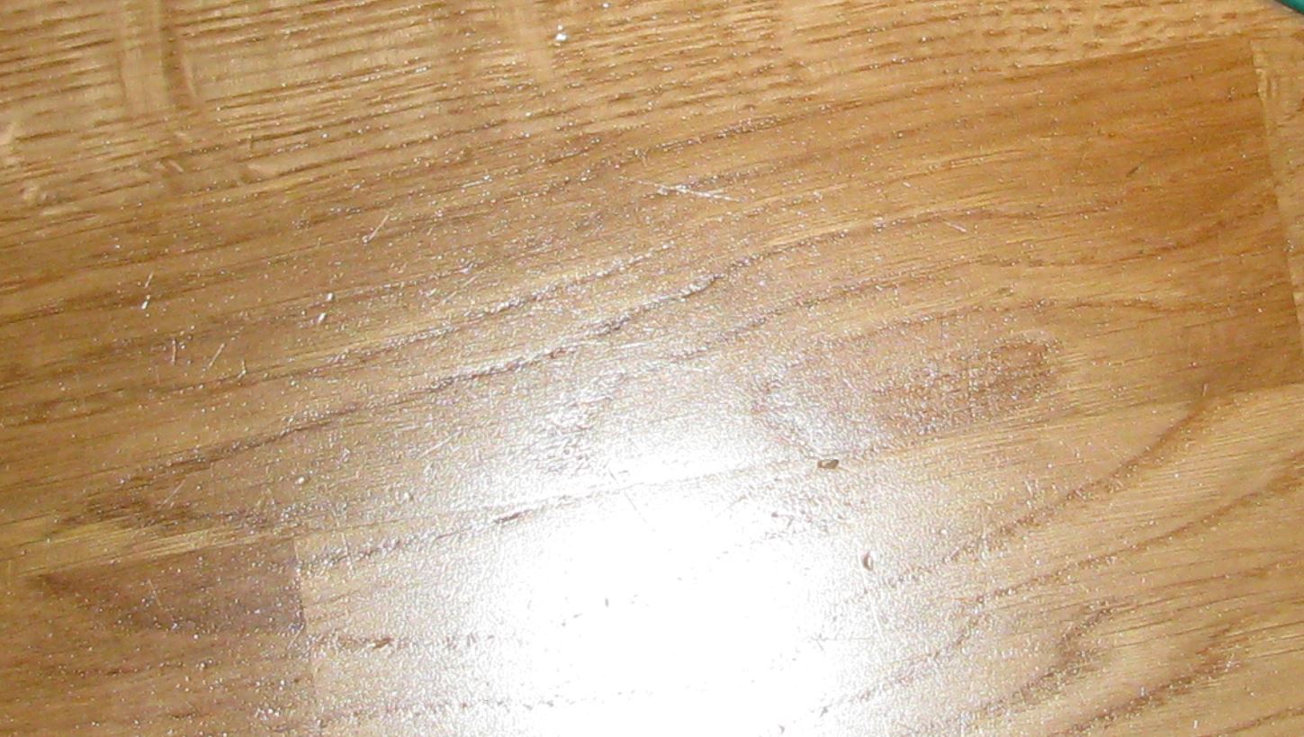 Вмятинки от падения игрушек и предметов + потертости лака от двиганья мебели.