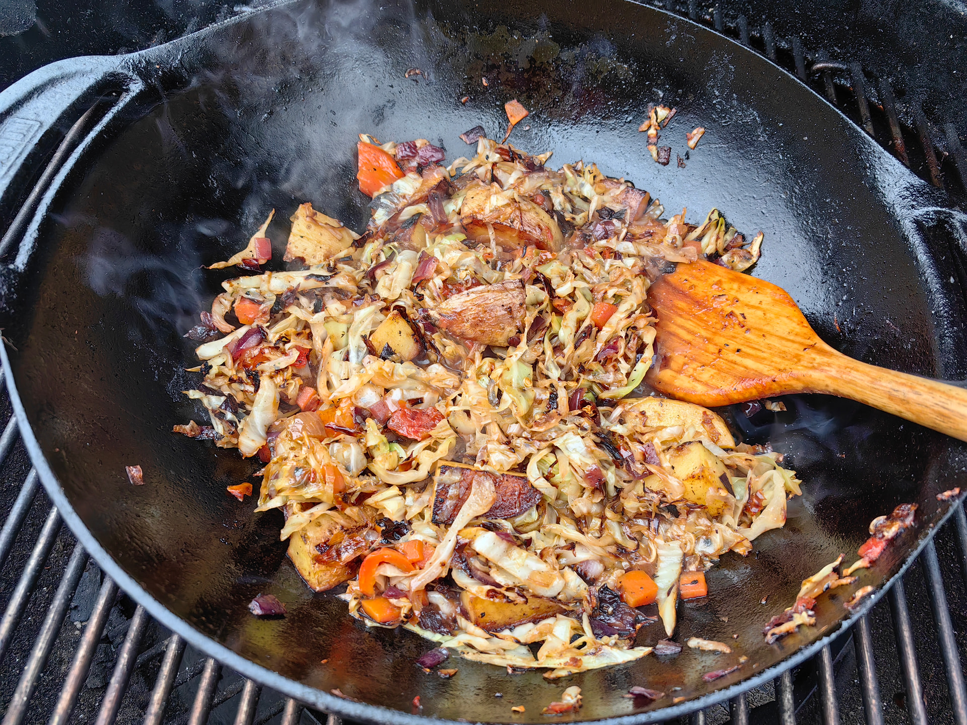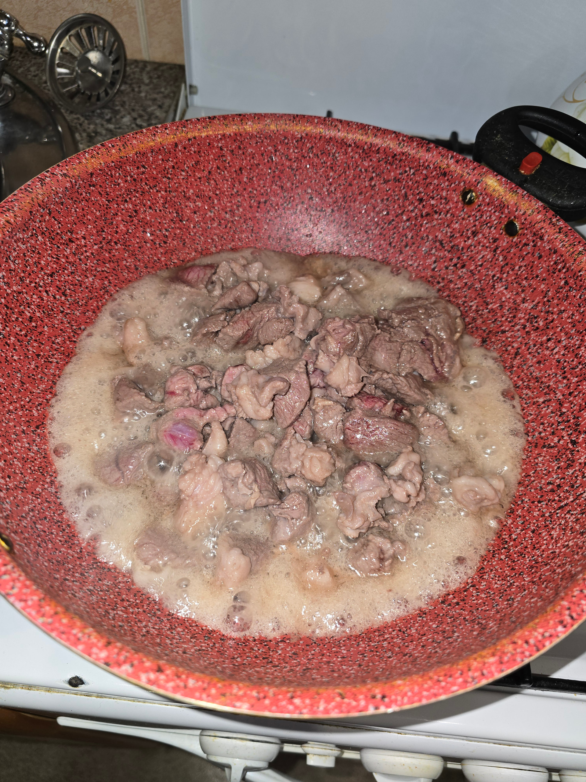 Надо казан чугуниевый, срочно! Это тушит, минуя стадию обжарки…