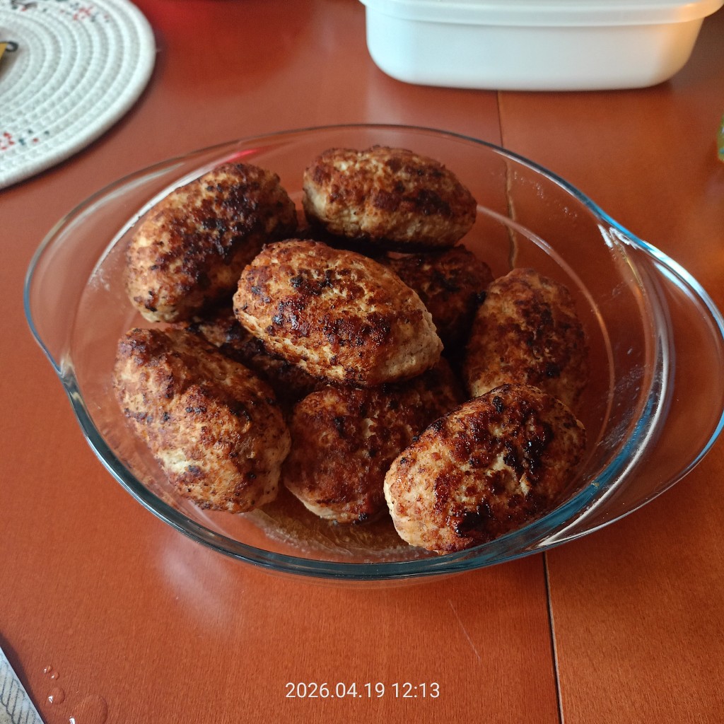 От меня котлеты, фарш свино-говяжий,лук,сырая кортофелина и хлеб замоченный в молоке. От супруги харчо.