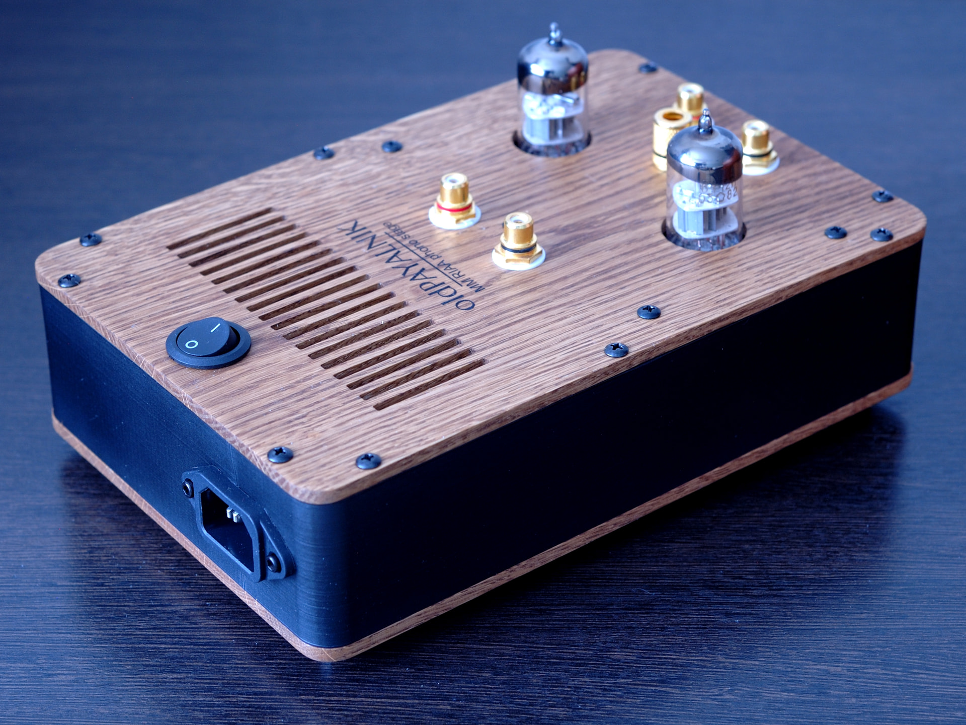 В свободно продаже у меня появился фонокорректор ММ на 6Ф12П, вот его фото. Цена прежняя 15т.р. Специальное текстурированное покрытие панелей под серебро, с переливающимся эффектом.