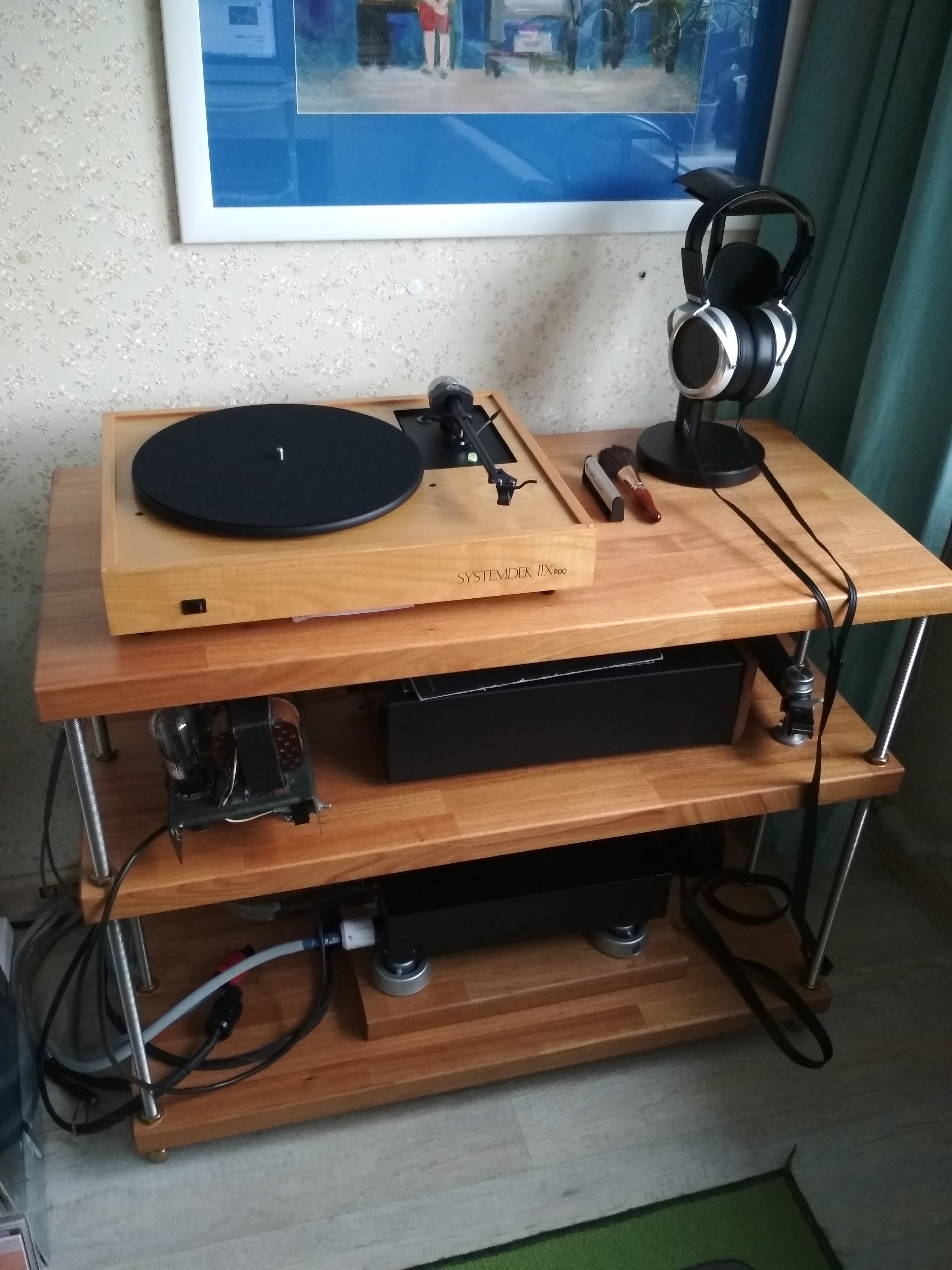 Система наушниковая: уши Stax SR-009,усилитель ламповый Stax SRM-007, основной фонокорректор Аббаса на EL84,EF86,и фоник на старых немецких черепашках.Стол Systemdek XII 900, тонарм AN II и головка AN IQ3 остались от бывшего тракта AN и хорошо у меня прижились. Проводки на системе медные, авторские- есть такой хороший человек Лев из Ростова-на-Дону. Музыкальный материал, без тяжестей, просто мои любимые пластинки, то что чаще всего слушаю.