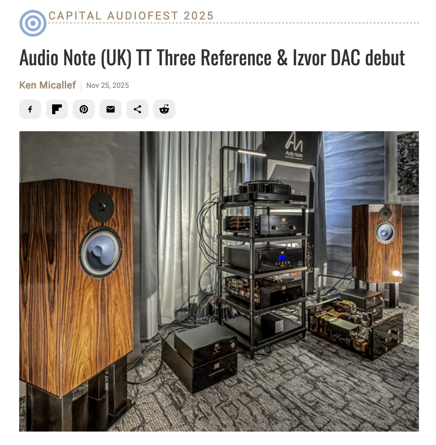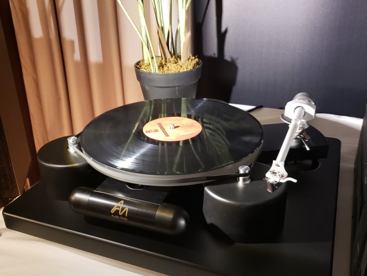 It was also the space where visitors could hear some great music on the total package from Audio Note (UK). Their TT-Three turntable ($27,500) anchored a stellar, complementary system that also featured the company’s AN-E Ltd loudspeakers ($97,000), Jinro integrated amp ($53,000), and CD 4.1x CD player ($24,900), along with some choice cabling.
