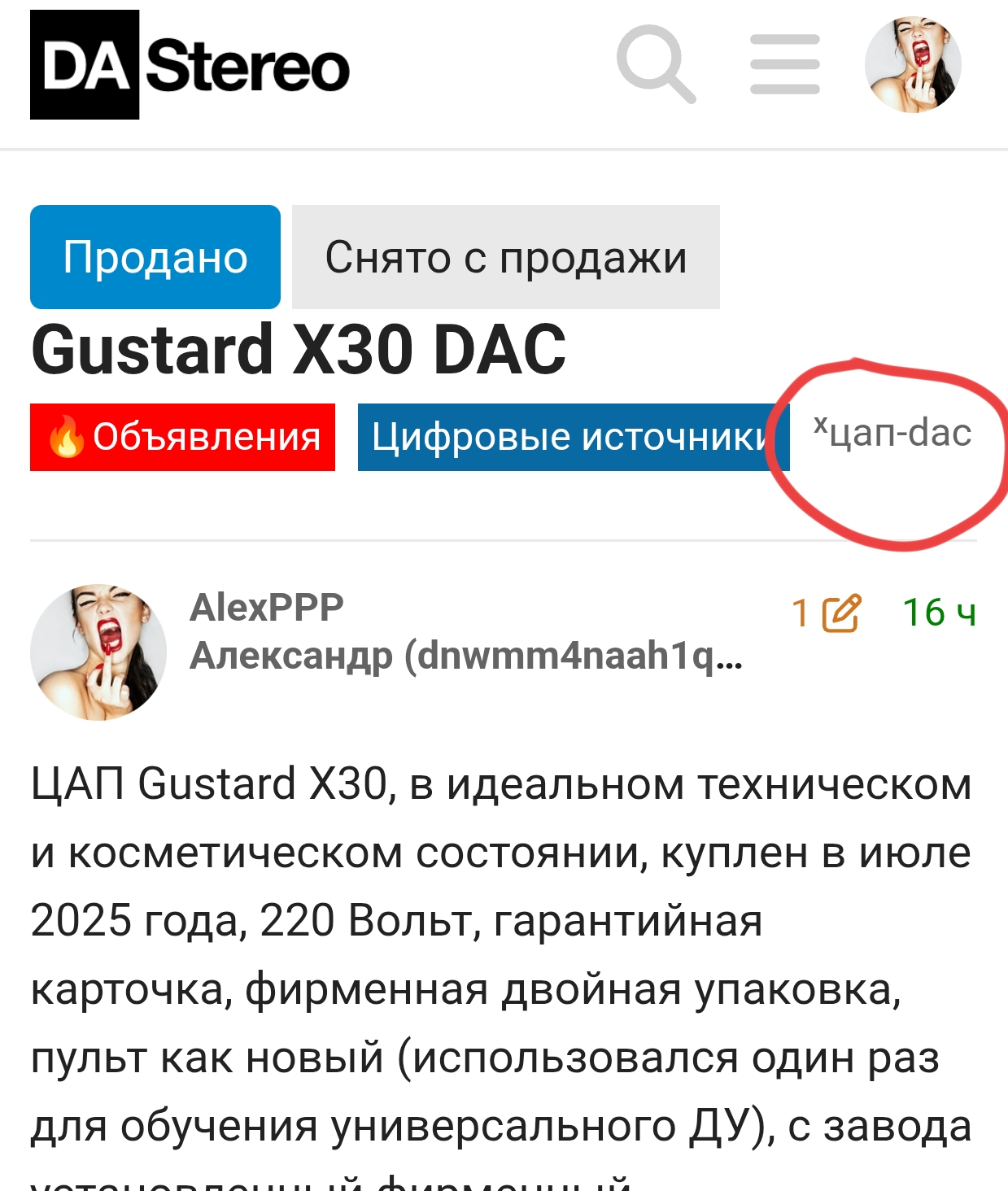 - доступ к объявлениям DAStereo не гарантируется, но если вы тут активны и профиль на Авито позитивный, то все будет