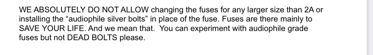 Судя по всему, мнение аудио-конструкторов разработавших используемое вами устройство с защитой в виде т.н. плавкой вставки для вас не является авторитетным по сравнению “с мнением нескольких людей в сети”.