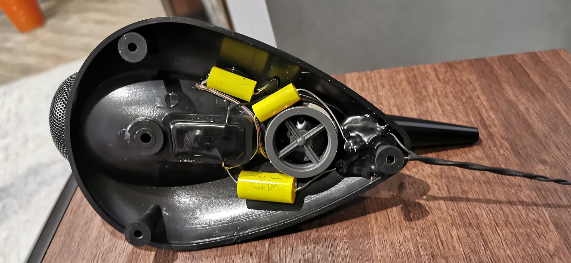 И да, качество на уровне гаражной самоделки - пластмассовый корпус дешёвого качества, с нижней части все детали, провода открыты, залиты клеем … могли бы сделать какое то дно, выведя выход с нижней катушки как то в отверстие… ![]()