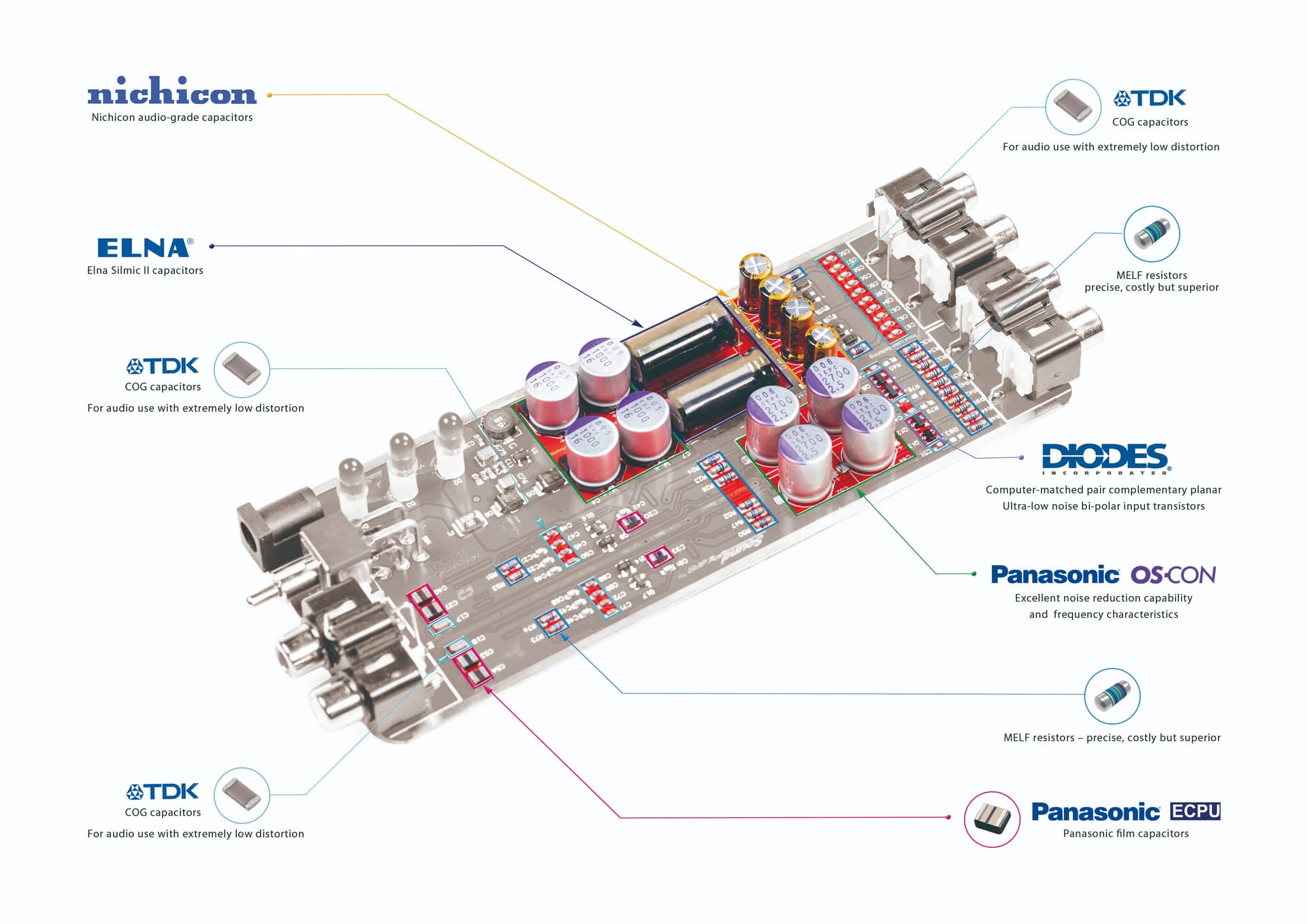 Я имел в виду конденсаторы уровня бумагомасляных медных Jupiter (в крайнем случае Miflex) и резисторы уровня танталовых немагнитных серебряных Audio Note. Тем паче, что их нужно немного: в цепочках коррекции RIAA по два кондера и два резистора на канал. И разделительные кондеры по пару штук на канал. (Le Pacific phono/ Boozhound Labs)