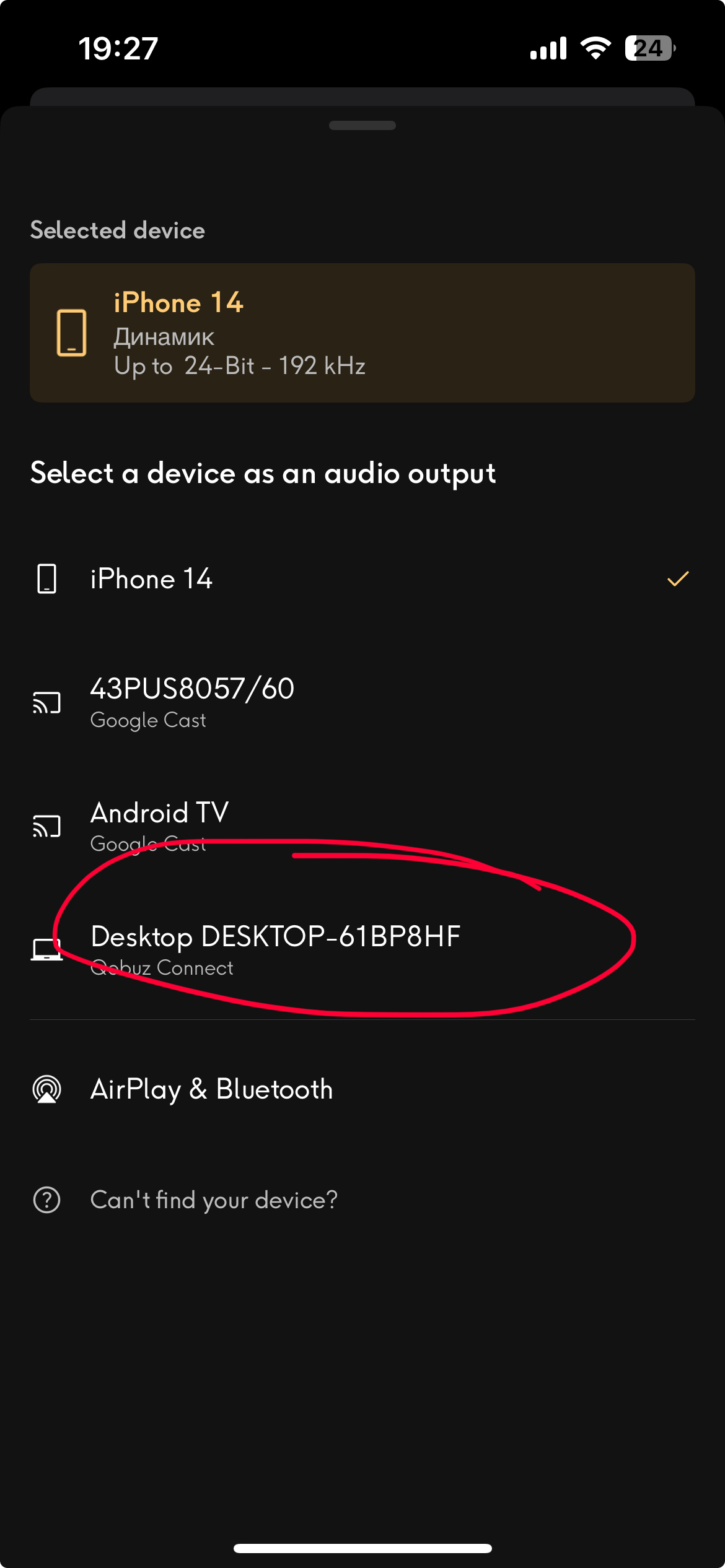 А на телефоне, у Вас получается обычный Qobuz установлен, и он видит десктоп как “Qobuz Connect”?