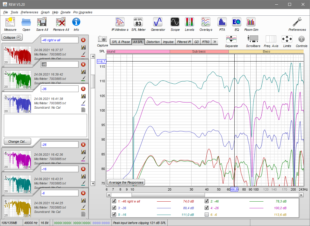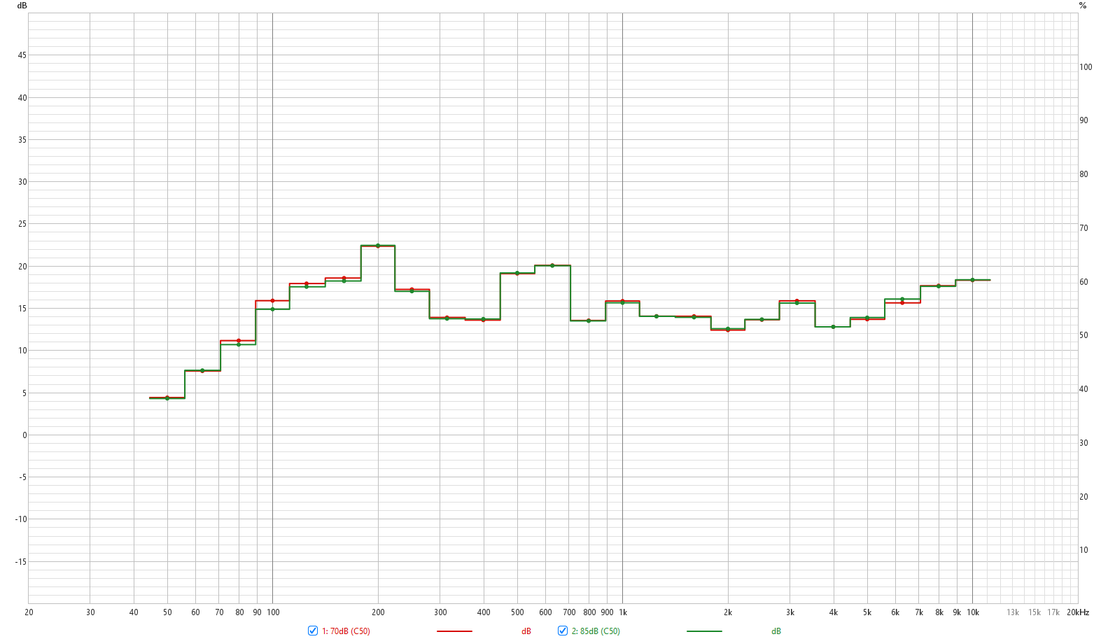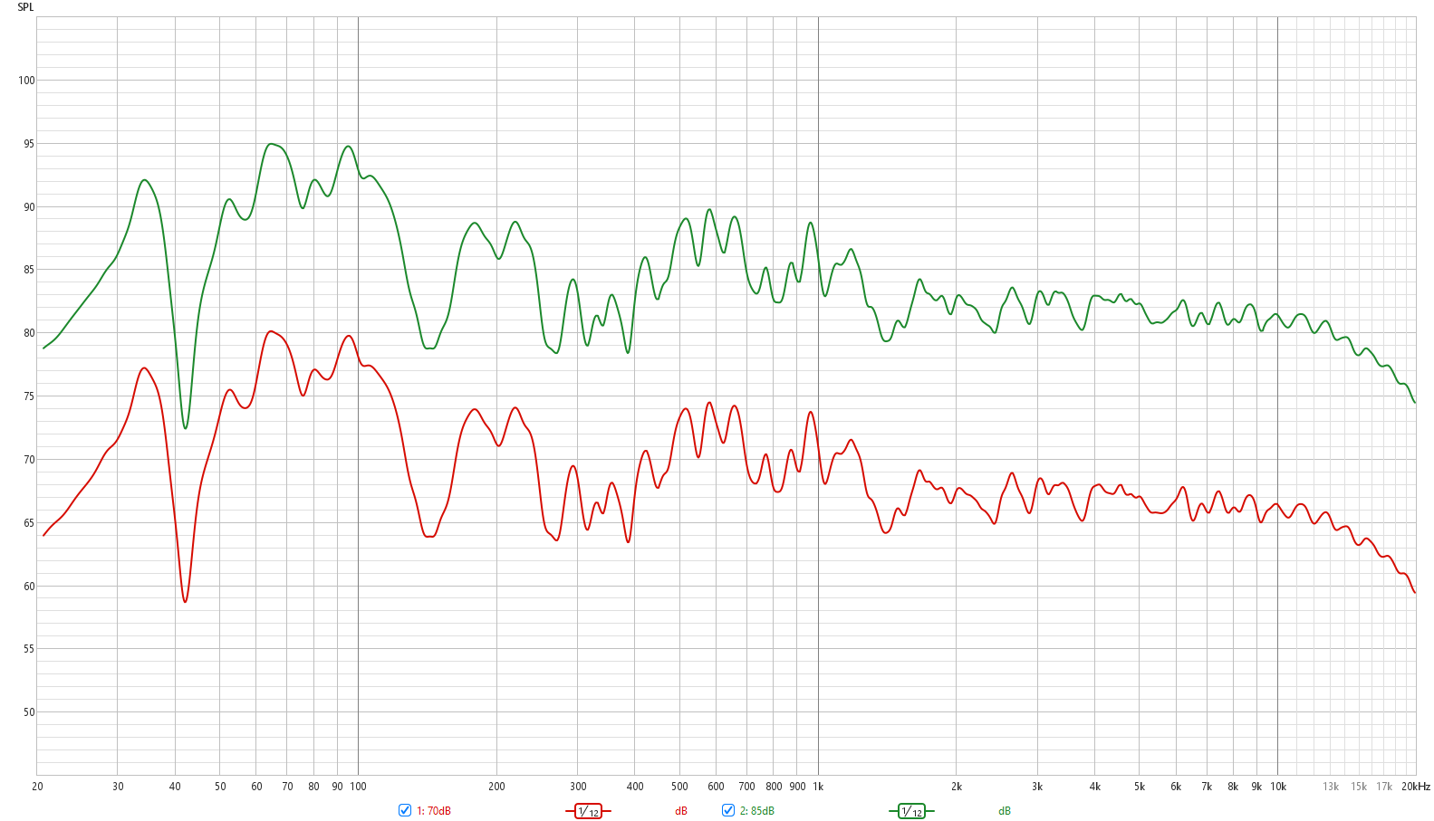 Громкость (SPL) 70 дБ это очень мало, обычно все меряют на 85 дБ. Учитывая логарифмический характер кривой громкости, между 70 и 85 дБ SPL – пропасть, 70 дБ тише в 4 с лишним раза 85 дБ.