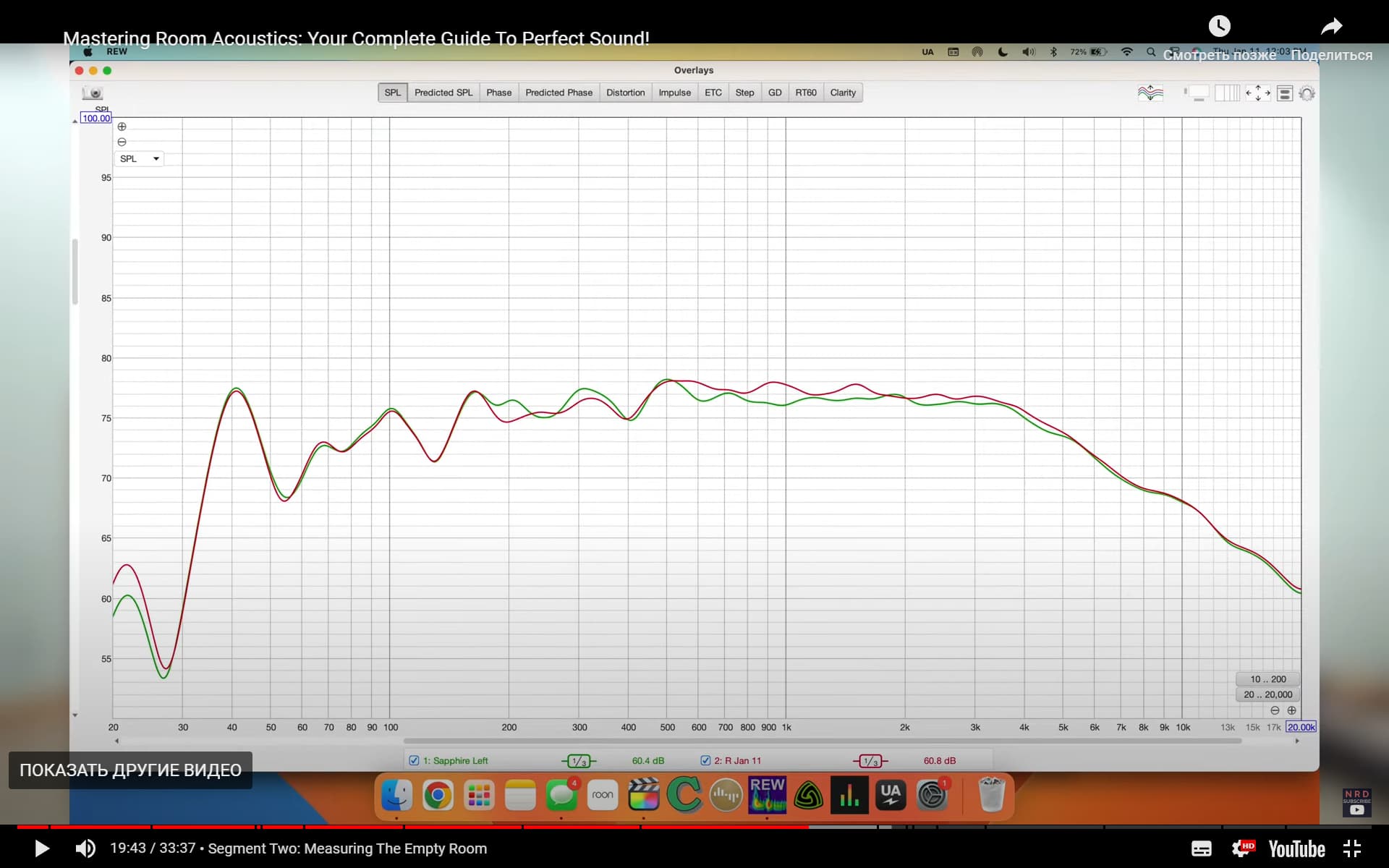 В первом видео он кстати на 75 дБ измерял пустую комнату. А обработанную на 70 дБ. Да он мошенник)))) С тем же успехом он мог сразу просто на 5 дБ громкость уменьшить и ничего с помещением не делать – всё бы и так улучшилось (5 дБ - это разница почти в 2 раза по громкости).