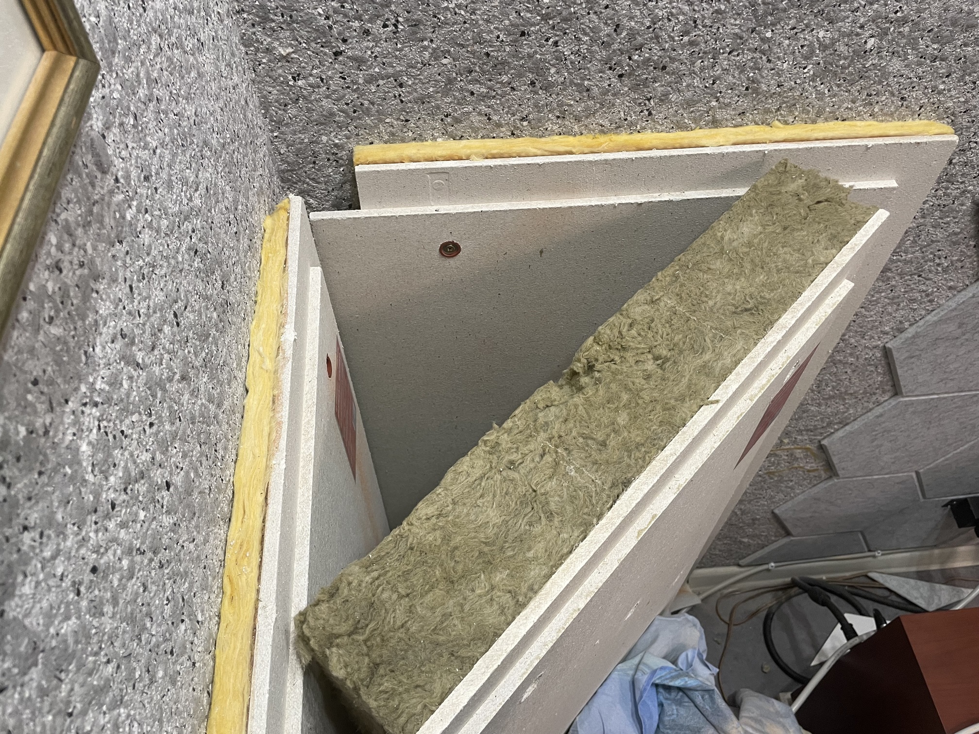 Дальше я уже заказал какой-то акустический гипсокартон кнауф, им обошью верх и перед. Будут образованы две промежности, между лицевым гипсокартоном и поперечной понелью и вторая - треугольная у стены. Их буду заполнять какими-нибудь передовыми и высокотехнологичными материалами. Еще не выбрал.