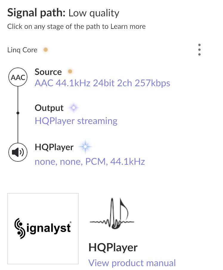 Что-то там HQ плеер улучшает, у меня в таких случаях появляется, вот на прямую и вот с апсемплингом внутри устройства: