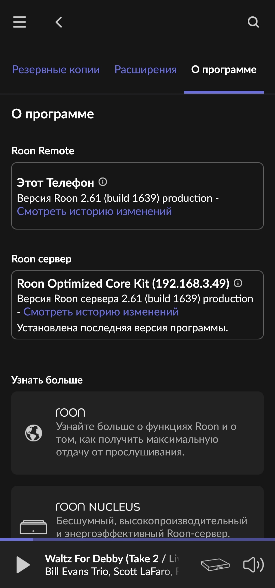 Roon / RoonServer 2.61 (сборка 1639) Производство