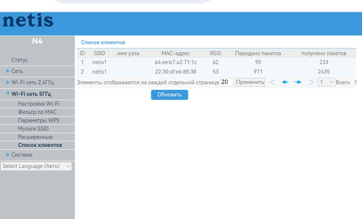 он показывает - что два клиента, подключенных, при этом пакеты идут.