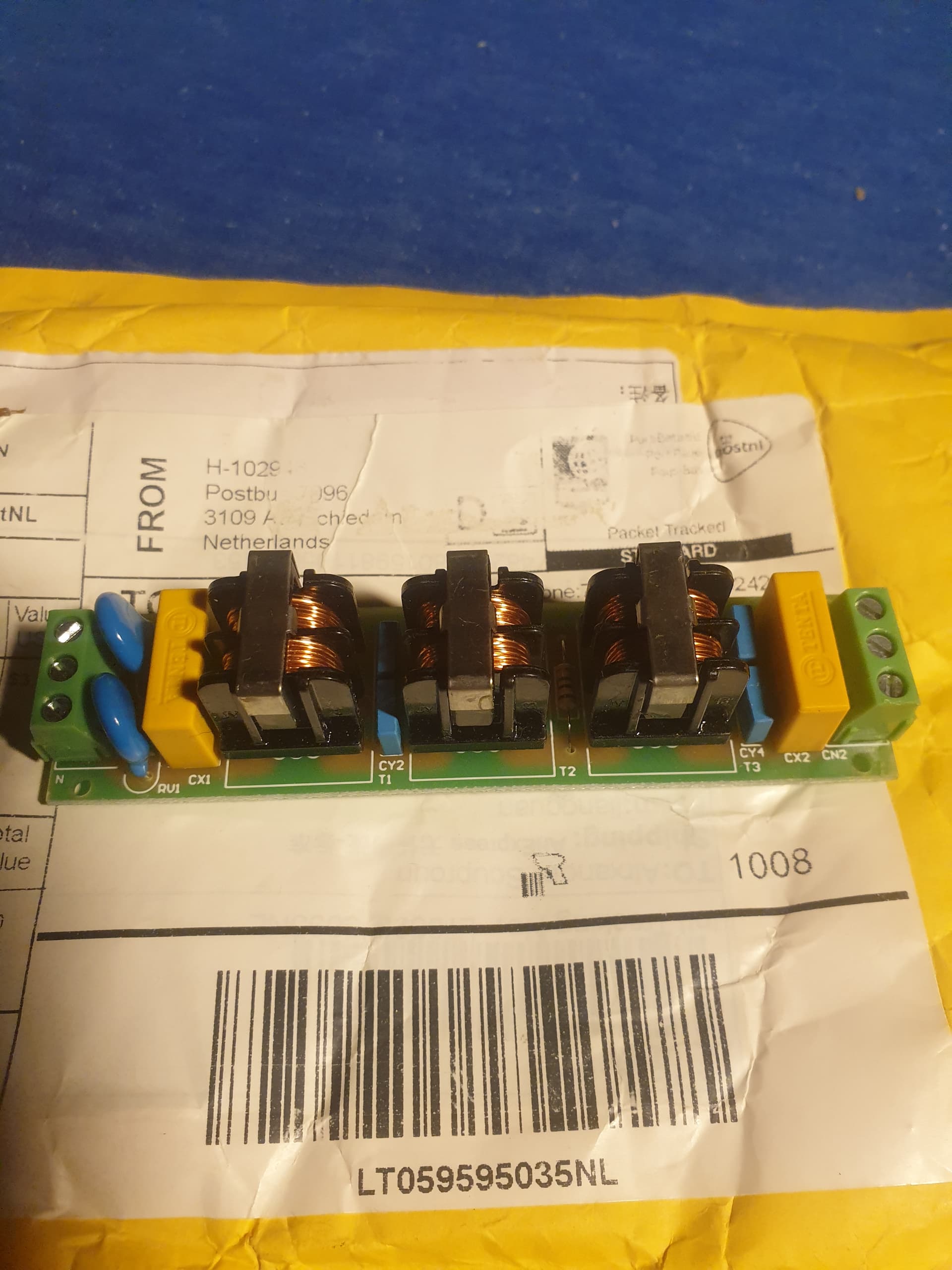 Нашел в кладовке китайский Line EMI Meter и решил проверить фильтры. Такие-вот: