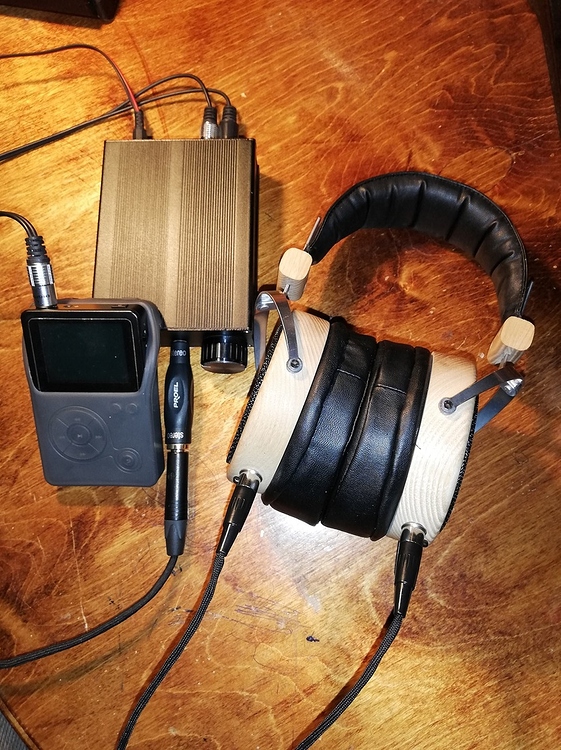 Ну и третье, первые впечатления о звуке. Для начала решил идти по нарастающей и подключил к небольшому китайскому ушному усилку по характеристикам типа играет от 32 Ом, источник Hidizs AP100. Ну откровений конечно не произошло, все предсказуемо, звук плосковат, фактуры нет, для неискушенного меломана в принципе сойдёт, но я знаю как должно быть.