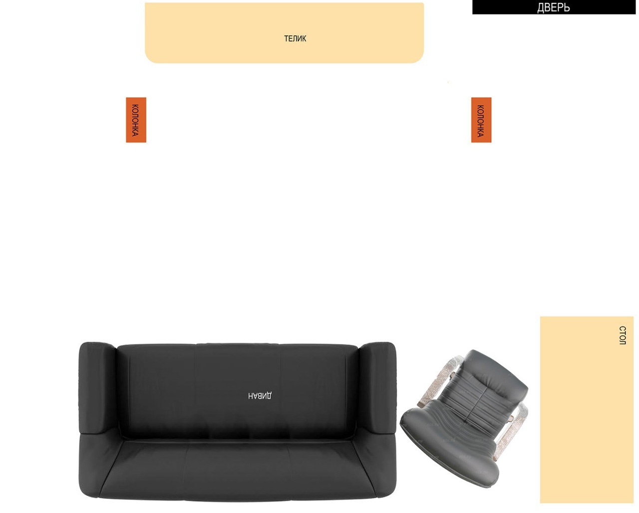 Не очень удобно будет диван стоять…