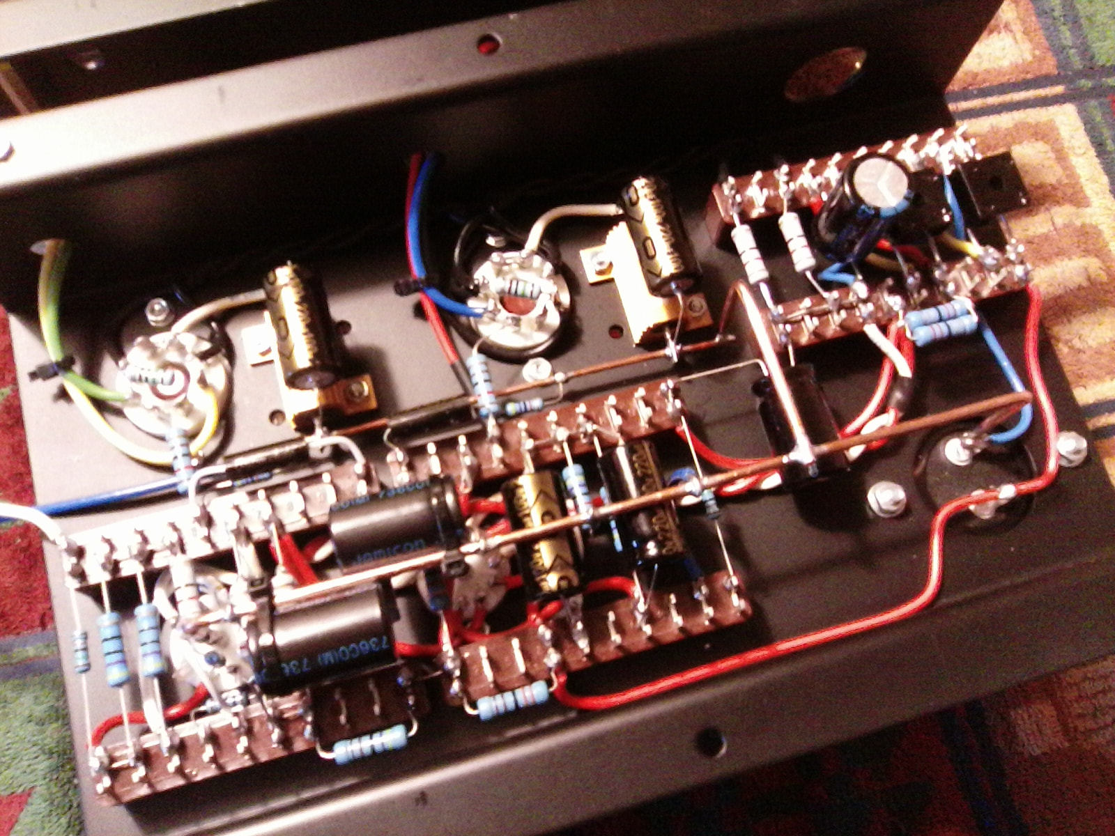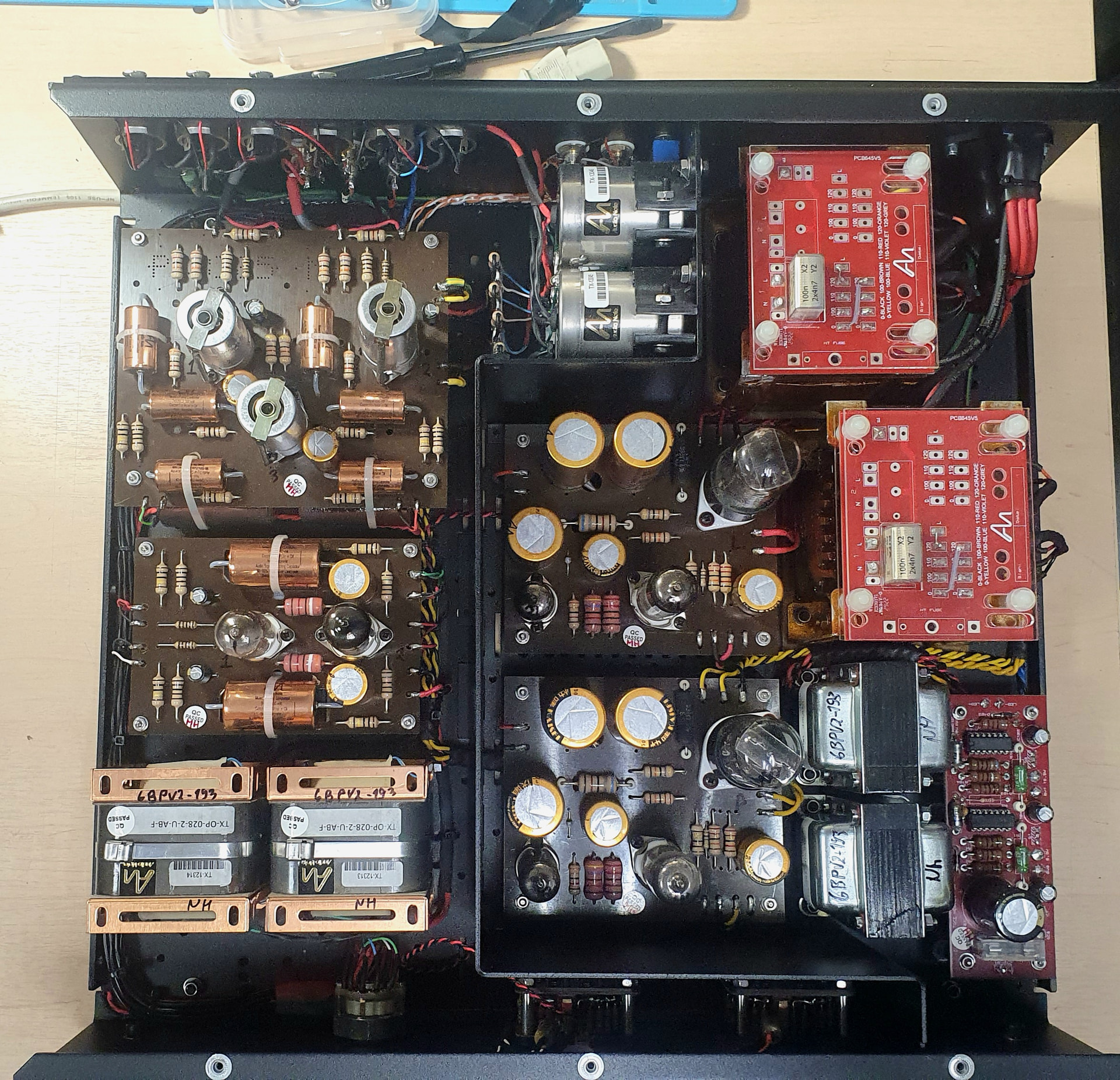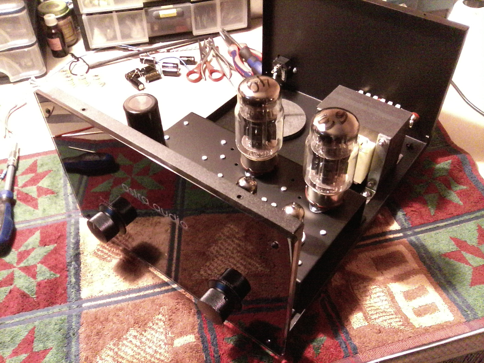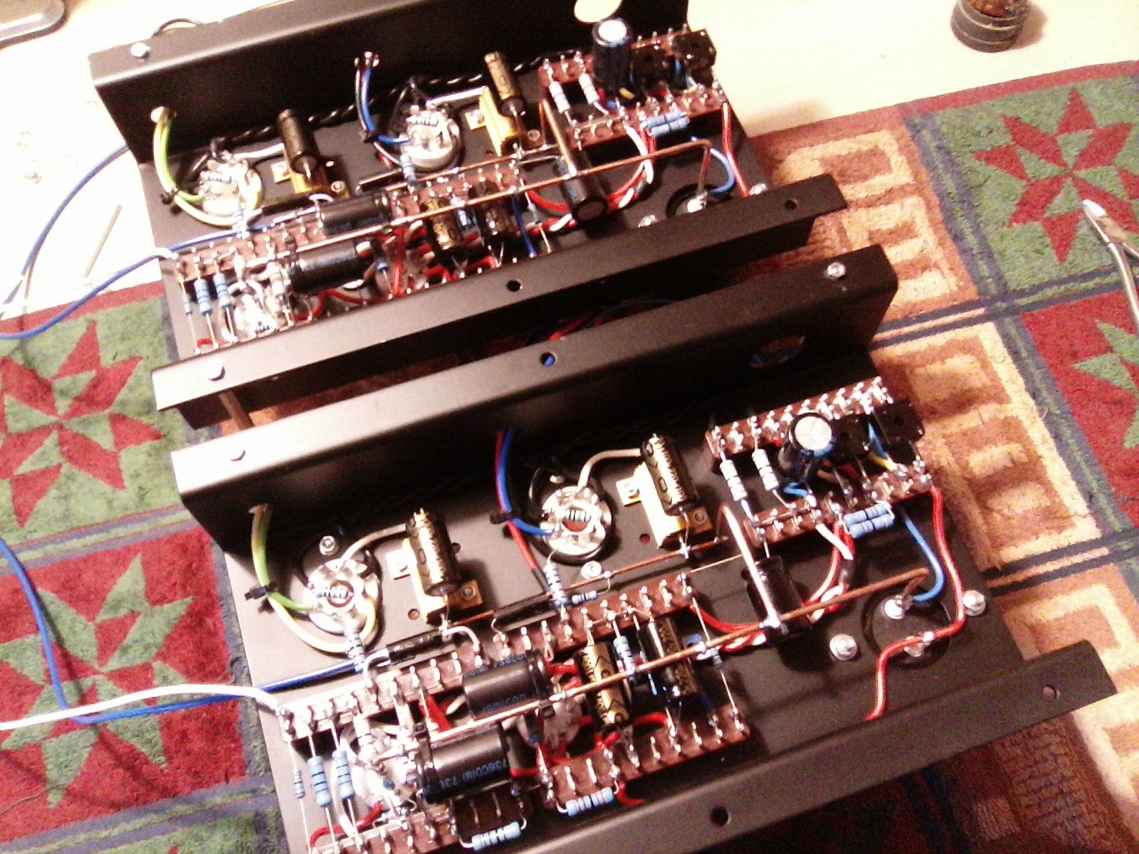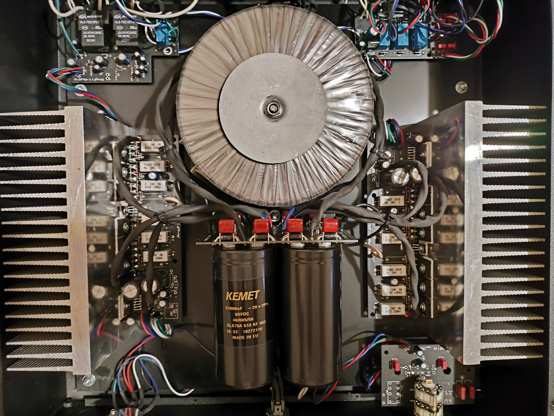 Лет пять назад, делал на заказ двухтактные моноблоки на КТ88 в закрытом корпусе. За качество фото извиняюсь!