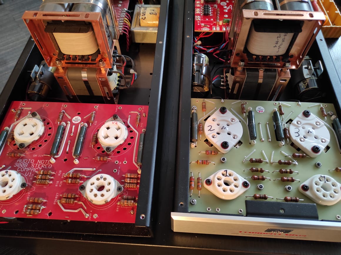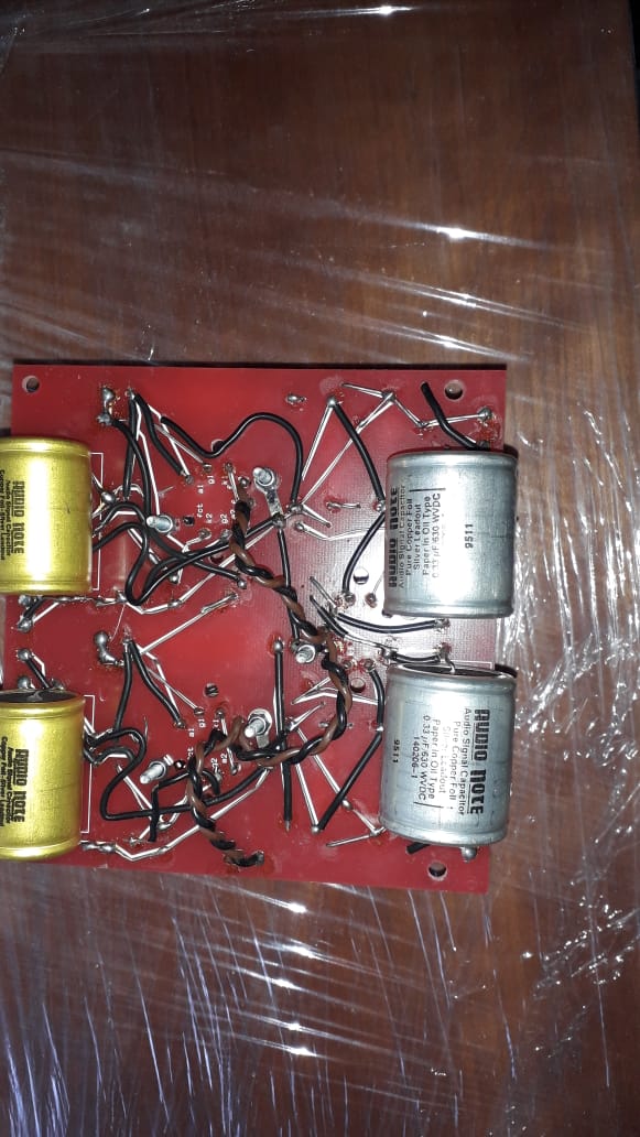 на последнем фото на плате корректора два разных по номиналам типа конденсаторов на 630 вольт. Это видно по размерам. Уже второй раз такой сабж вижу. Однако сейчас Петр ставит одинаковые по номиналам конденсаторы 0.22 на 630. и ес-но люминий вместо меди. Во объяснил бы кто, чем вызвана такие разногласия у Петра? Кто то сравнивал старую версию и новую. Как там звук отличается?