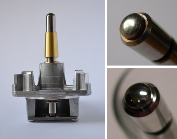 Вал двигателя (шпиндель) упирается в металлический ограничитель закругленным металлическим концом. В MK2 эта часть двигателя открыта, в последних модификациях серии ее сделали закрытой.