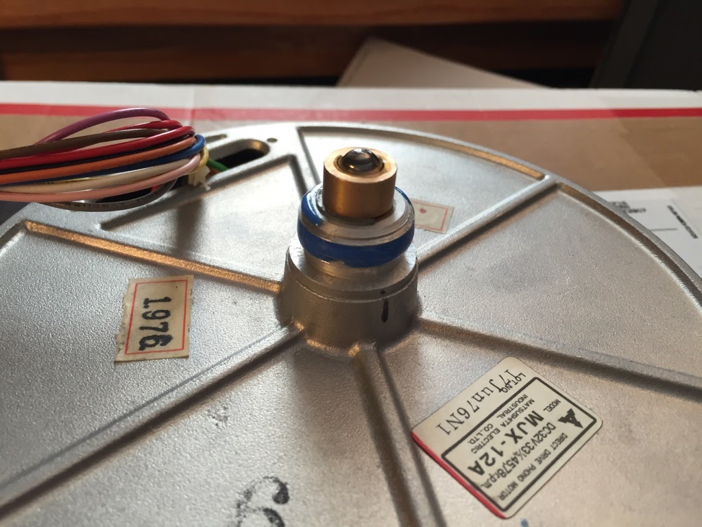 Фото не все мои, потому что я не все фотографировал в процессе работы. На первом двигатель со снятой крышкой, хорошо видны внутренности. На втором обратная сторона крышки двигателя на котором виден магнит и вал без колпачка из торлона. На третьем обратная сторона двигателя, видна этикетка с датой изготовления, моделью и питанием двигателя. Также видна крышка подшипника двигателя. На четвертом фото крышка подшипника снята, виден сам подшипник. На пятом вал с колпачком из торлона.