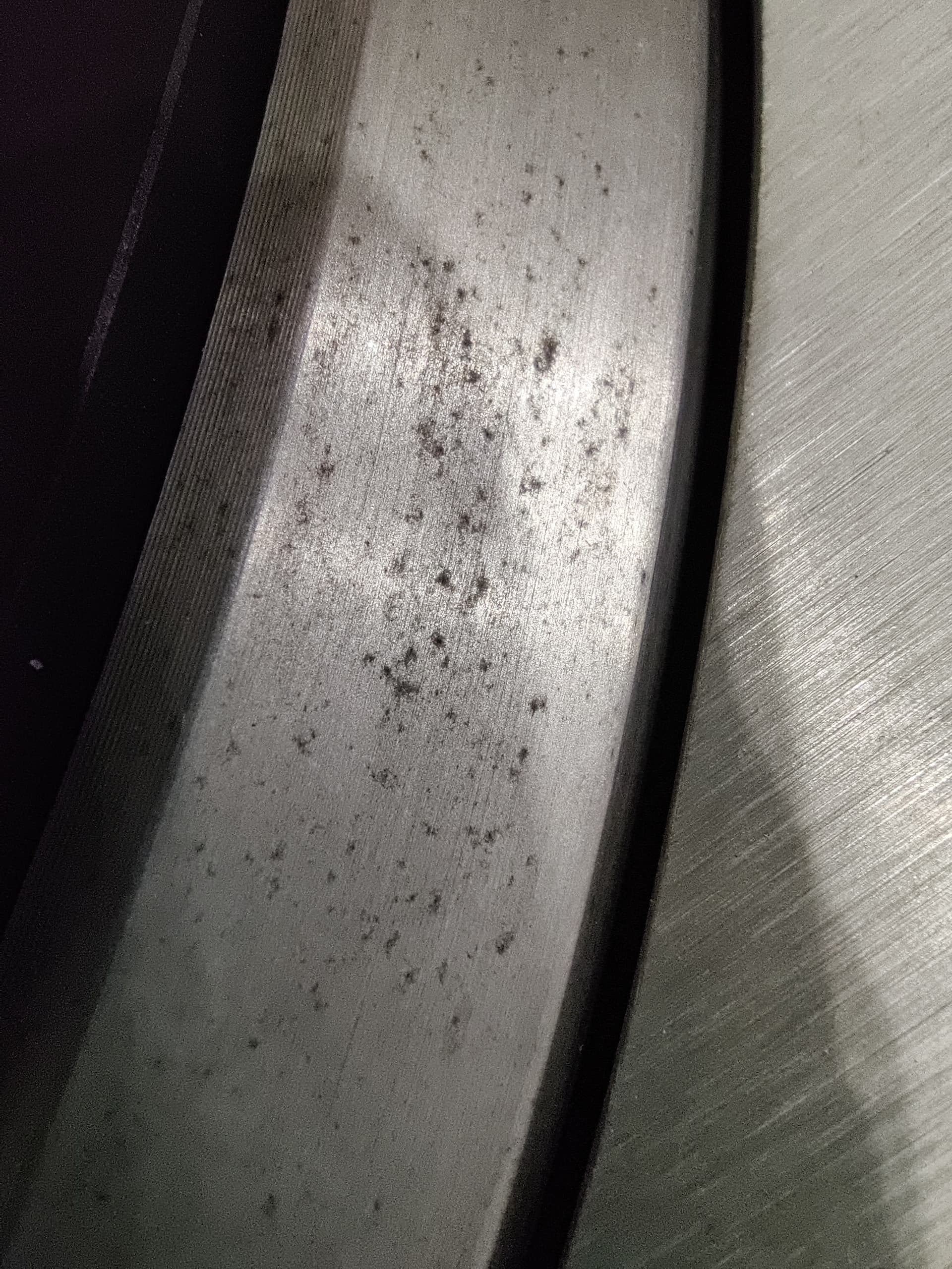 Это уже достаточно сильная коррозия. Можно попробовать наждачной бумагой 1000 с машинным маслом в ручную обработать, затем миламиновой губкой с пастой ГОИ разведенной в том же машинном масле или WD-40. Если наждачной бумагой будет плохо оттираться, то можно взять зерно покрупнее.