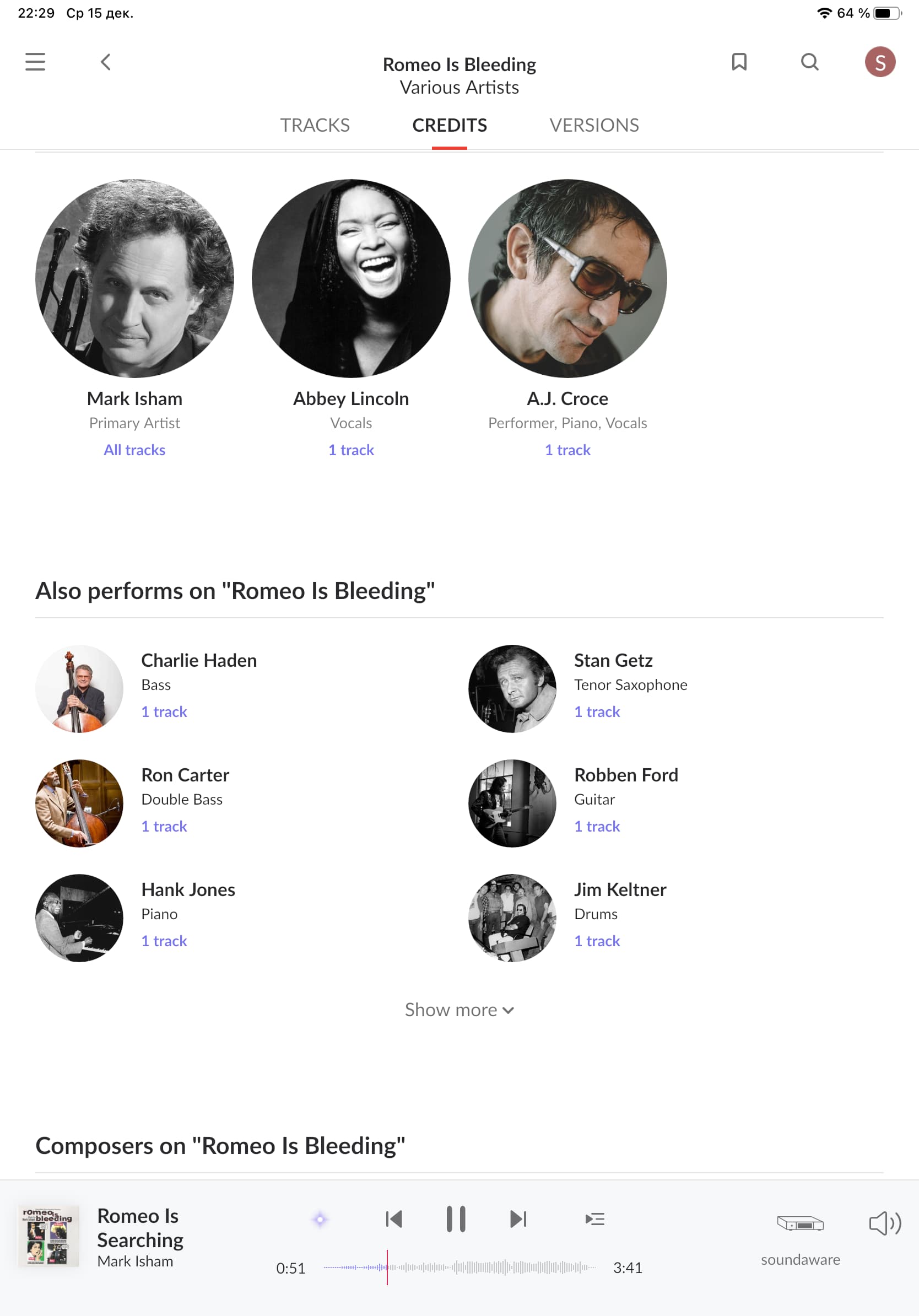 И снова я. Как говорили в одном незабываемом шоу: «за роялем то же, что было и раньше». Зато на трубе сегодня Mark Isham.