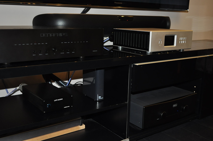Установлен второй трансформатор Talema 25W и стабилизатор на 5V для отлельного питания клок платы. Внутреннюю кабельную разводку делал самостоятельно с тестовым прослушиванием у Валерия Гилёва и его рекомендациями. Все эти апгрейды существенно повлияли на звук. Не оставив моему адаптированному Минику с лучшими цифровыми кабелями немалейшего шанса. Звук вполне конкурентоспособный тому же Versus MP.