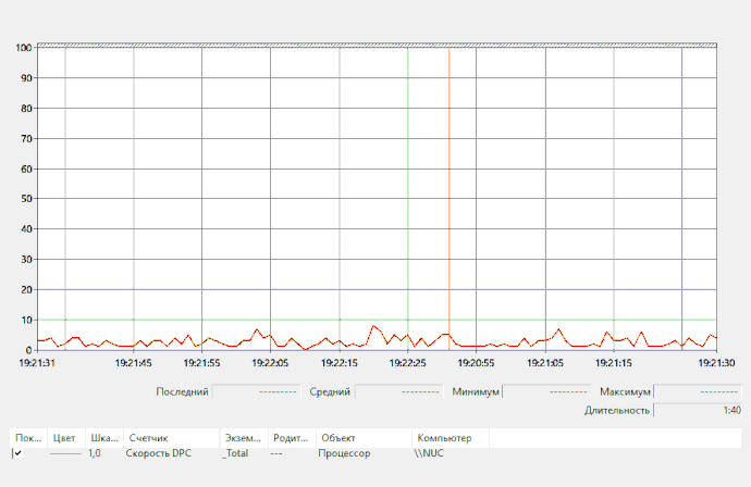 Highest measured interrupt to DPC latency (µs): 73,777909