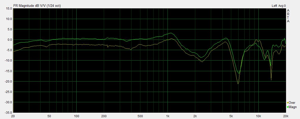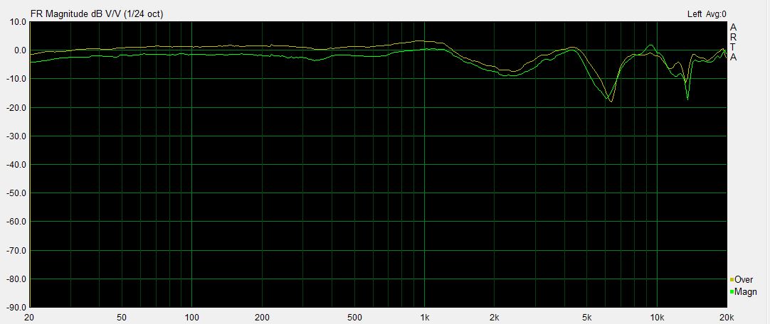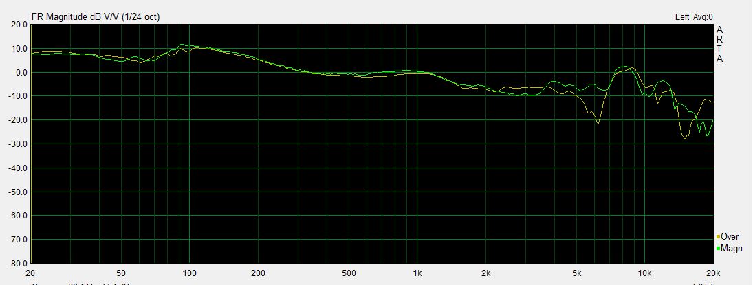 На НЧ и СЧ разница в уровне. На ВЧ примерно равно, отсюда и отмеченная мной странность в восприятии звучания, к которой я не смог привыкнуть. Все замеры делались спустя некоторое время после попыток сначала расслушать все ушами и попытаться адаптироваться к подаче.