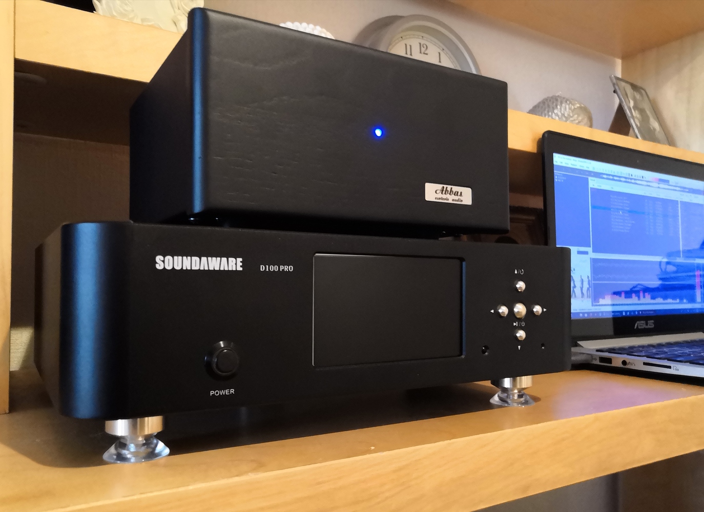Подключил Аббаса в систему своими кабелями, звук подал с ноута Асус Win10 64bit + KS driver Abbas + Foobar2000 1.3.4