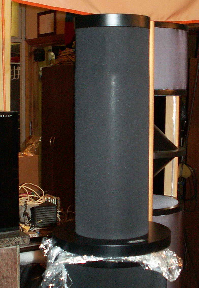 Спасибо организатора за предоставленную (уникальную) возможность организовать тур. Для желающих понять свойства нашей акустики хочу предложить в тур самую простую (полочную) нашу АС. Высота 50 х диаметр 16 х диаметр подставки 26см, вес 3кг, одна. Предлагаю стереопару, кабель 2м входит в комплект. Сопротивление 8 Ом, мощность 40-50 Вт. Других параметров не привожу сознательно – решите сами, мне интересно ваше мнение. Возможны различные варианты оформления, от замены цвета, до дизайнерского исполнения. Это самый дешёвый вариант без клемм с нажимным разъёмом. Стоимость 20.000руб. Для просмотра телевизора центральный канал не требуется, звук локализуется на говорящем, а не на АС.