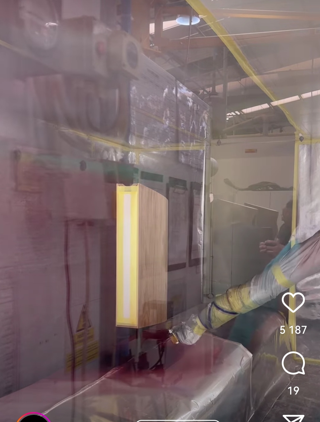 Обратите внимание, окраска/лакировка производится в камере роботом, как на автомобильном заводе.