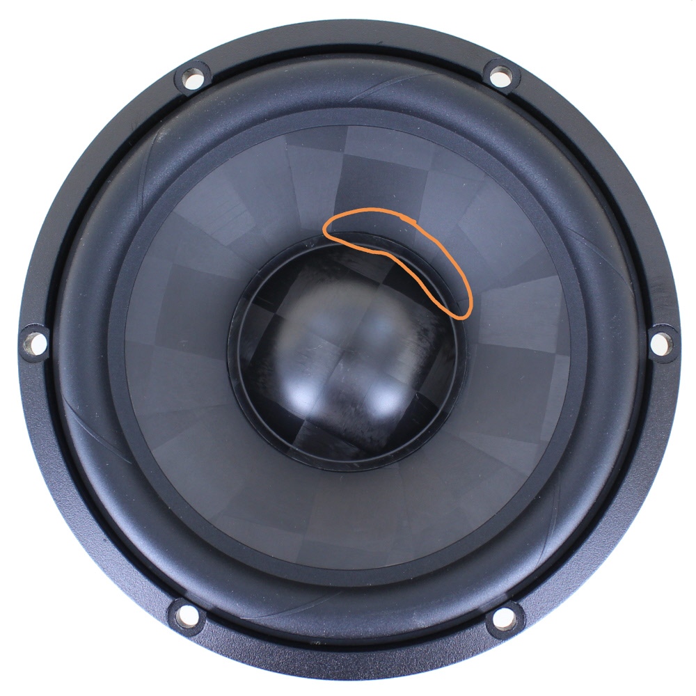 Возможно здесь имело место термальное воздейставие на акустику при логистике или у пред владельца (если бу). Возможно также проводилась апгрейд-замена драйвера. Как вар самопально..