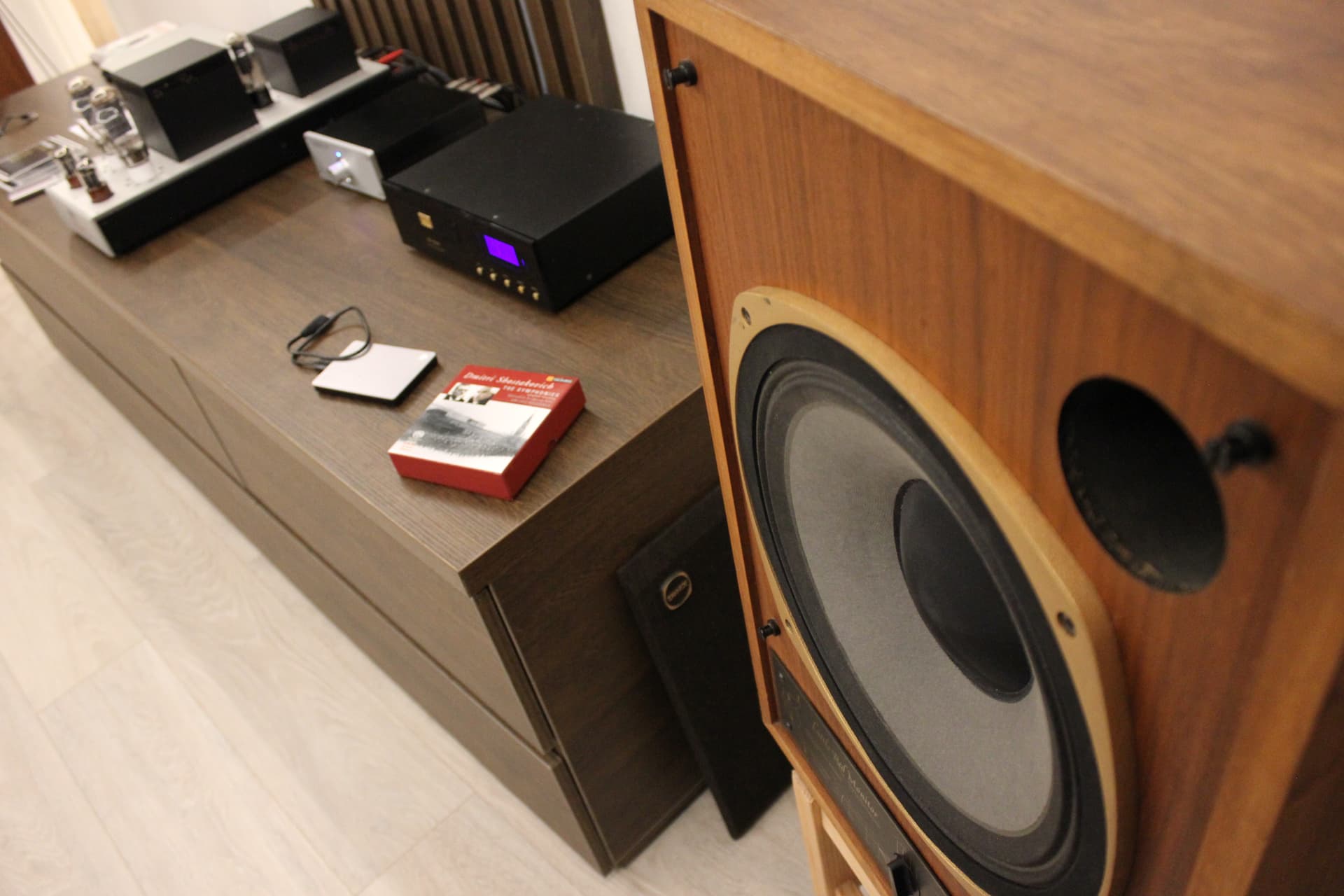 Что касается расположения, то я бы рекомендовал доворот на слушателя: при этом угол доворота надо выбирать из конкретных условий в комнате прослушивания. И точно не стоит рассматривать данную акустику в небольшие комнаты. Идеальная сцена в моей комнате была примерно на расстоянии 4-5 метров от лицевой панели колонок. Их конструкция не позволяет выстроить сцену вглубь, музыкаты не играют из-за колонок. Вся музыкальная жизнь разворачивается перед тобой, и музыкантам нужно иметь больше места на сцене, а слушателю не стоит сидеть в плотную к акустике, у него абсолютно другая задача. Моя рекомендация ставить Tannoy LRM в комнаты от 18-20 кв м, но исключительно отведенные под музыку. Им нужен простор перед собой и тогда они максимально раскроют свой потенциал. Музыка подается плотной стеной, а расположение музыкантов идет на одной линии. И это не недостаток! Надо просто перестроиться на их лад и тогда у вас будет точное впечатление присутствия музыкантов в вашей комнате. Классный эффект!