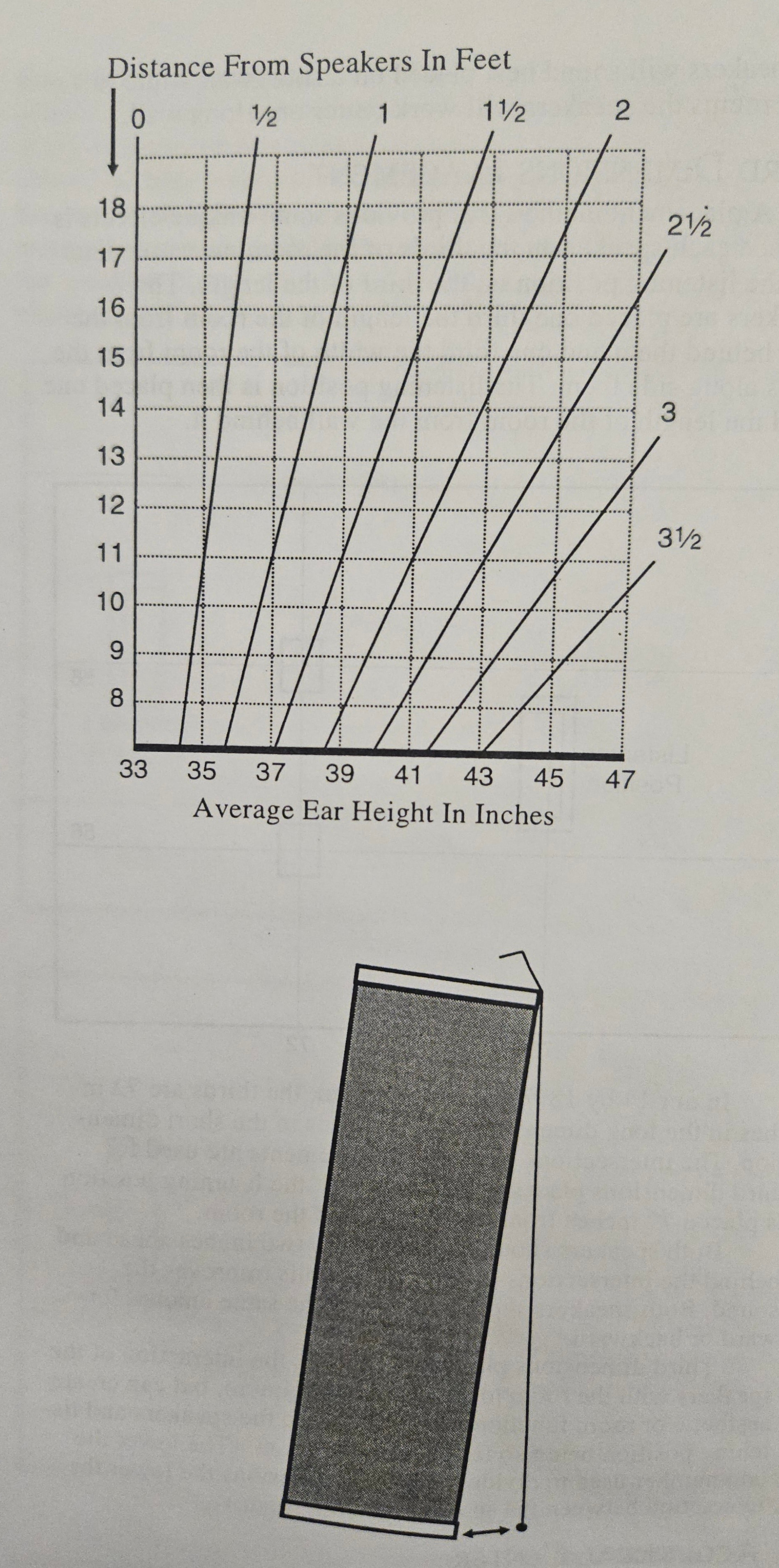 Наклон АС зависит от удаления слушателя от АС и высоты расположения ушей. В моем случае я установил их вертикально (без наклона) и звук стал существенно лучше.