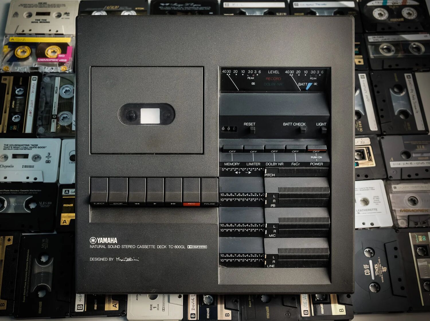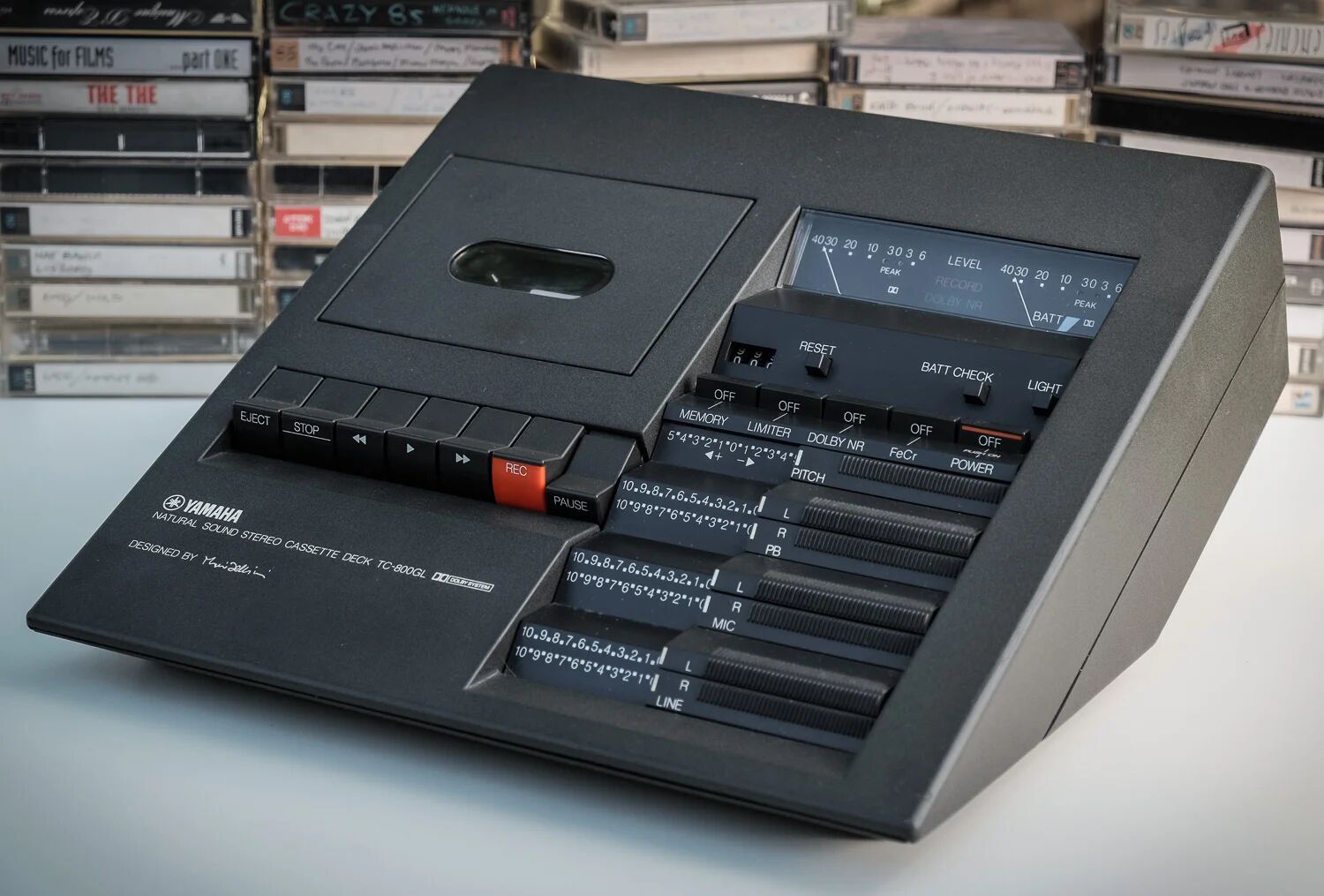 Кассетная дека настольного «плоского» форм-фактора, результат работы известного дизайнера Марио Беллини (Mario Bellini).