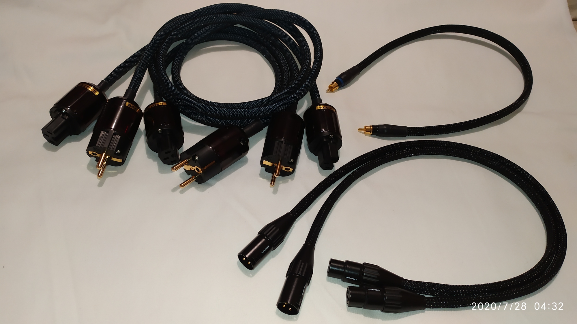 По желанию человека, были сделаны силовые кабели без разъемов. При установке своих разъемов, вместо моих стоковых он отметил сильную разницу в сторону улучшения звучания, по всему диапазону. В частности клоны furutech fi-50. Для желающих ,возможно изготовление кабеля без вилок.