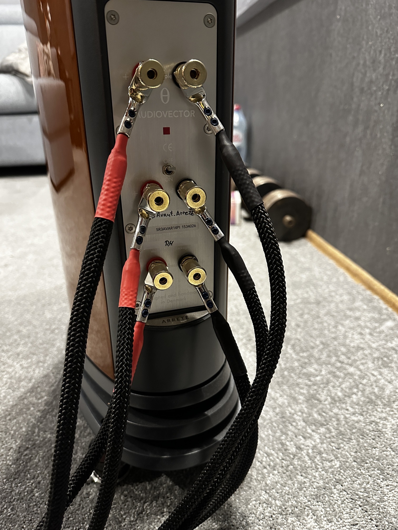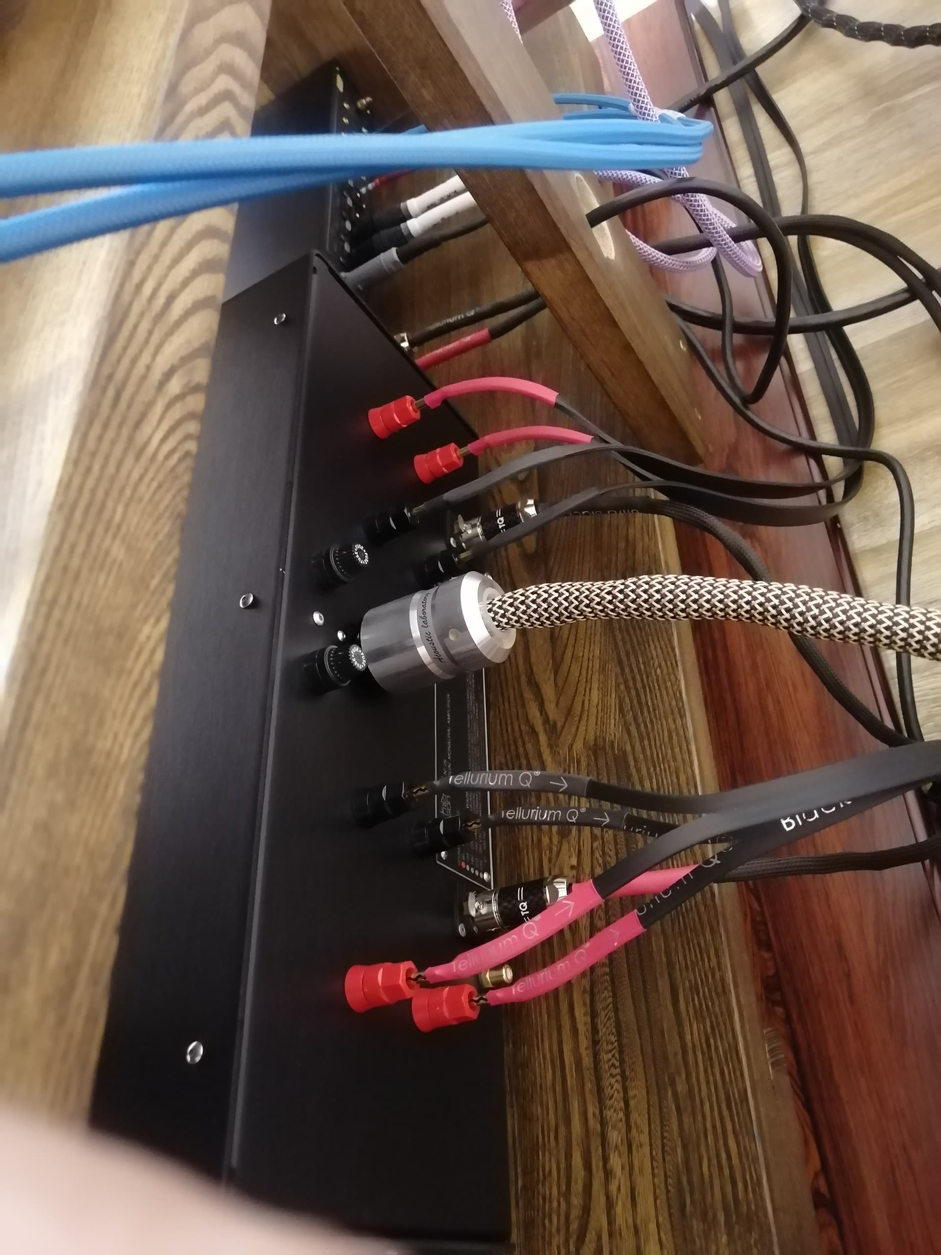 Вот как-то у меня собралось сразу дома 3 кабеля (AudioQuest Sterling 3, Kimber Monocle X и Tchernov Reference) и решил я замутить биампинг, благо мой мощник это позволяет. Опять же возник у меня вопрос что-куда ставить. Послушал по отдельности провода с перемычкой (кстати, перемычка хорошего уровня Tellurium Ultra Black 2), чтобы определиться с характерами кабелей.