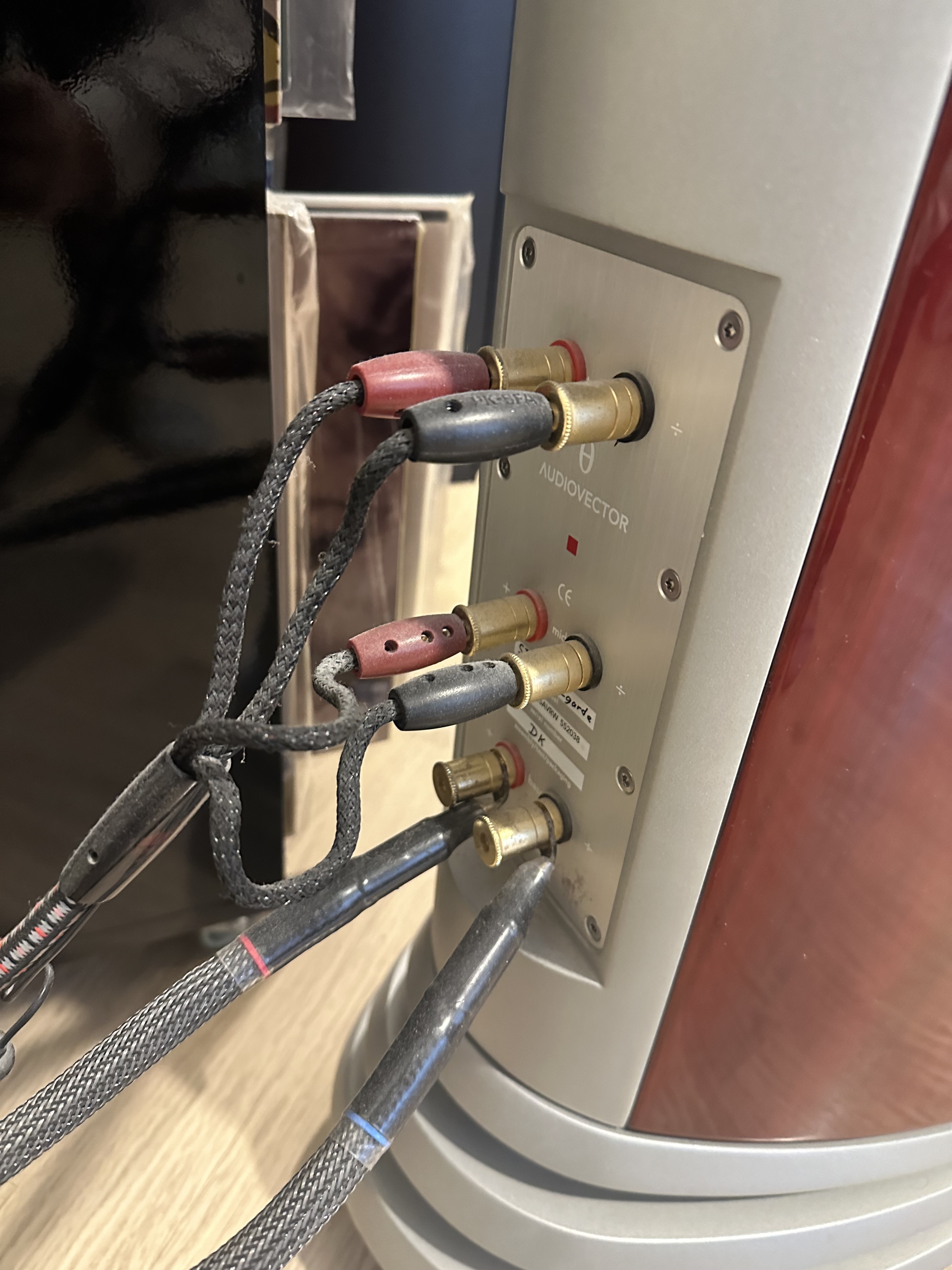 - Для 3-полосной или электростатов кабель рекомендуют подключать к секции ВЧ/СЧ, как более критической, а на НЧ уже направить перемычки.